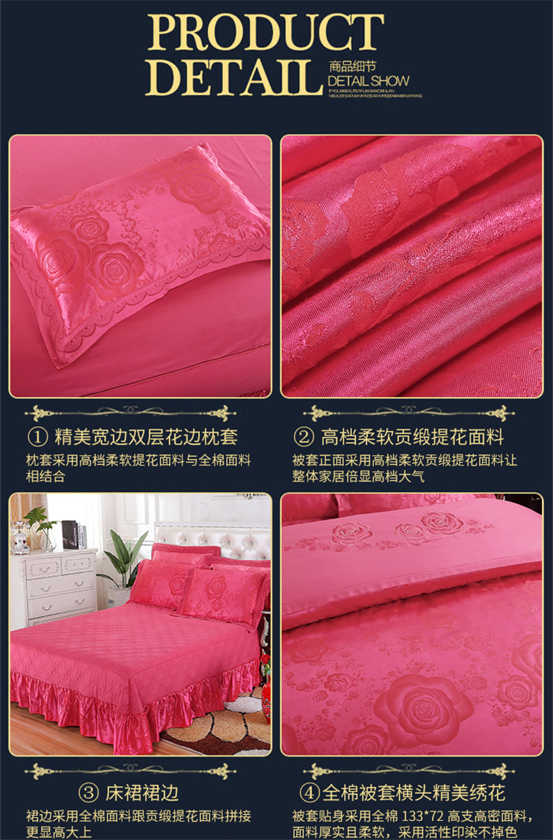 (总) 福丽莱家纺 2019贡缎提花床裙四件套(单层),黛香-豆沙,典范欧风-蓝灰,菲洛嘉,国色佳人,花团锦簇-银灰,花团锦簇-粉玉,玛格丽特-金兰,玫瑰风情-大红,摩卡庄园-紫驼,暖心芳妍-大红,浅芳菲-粉紫,喜上眉梢-砖红,仙境青色