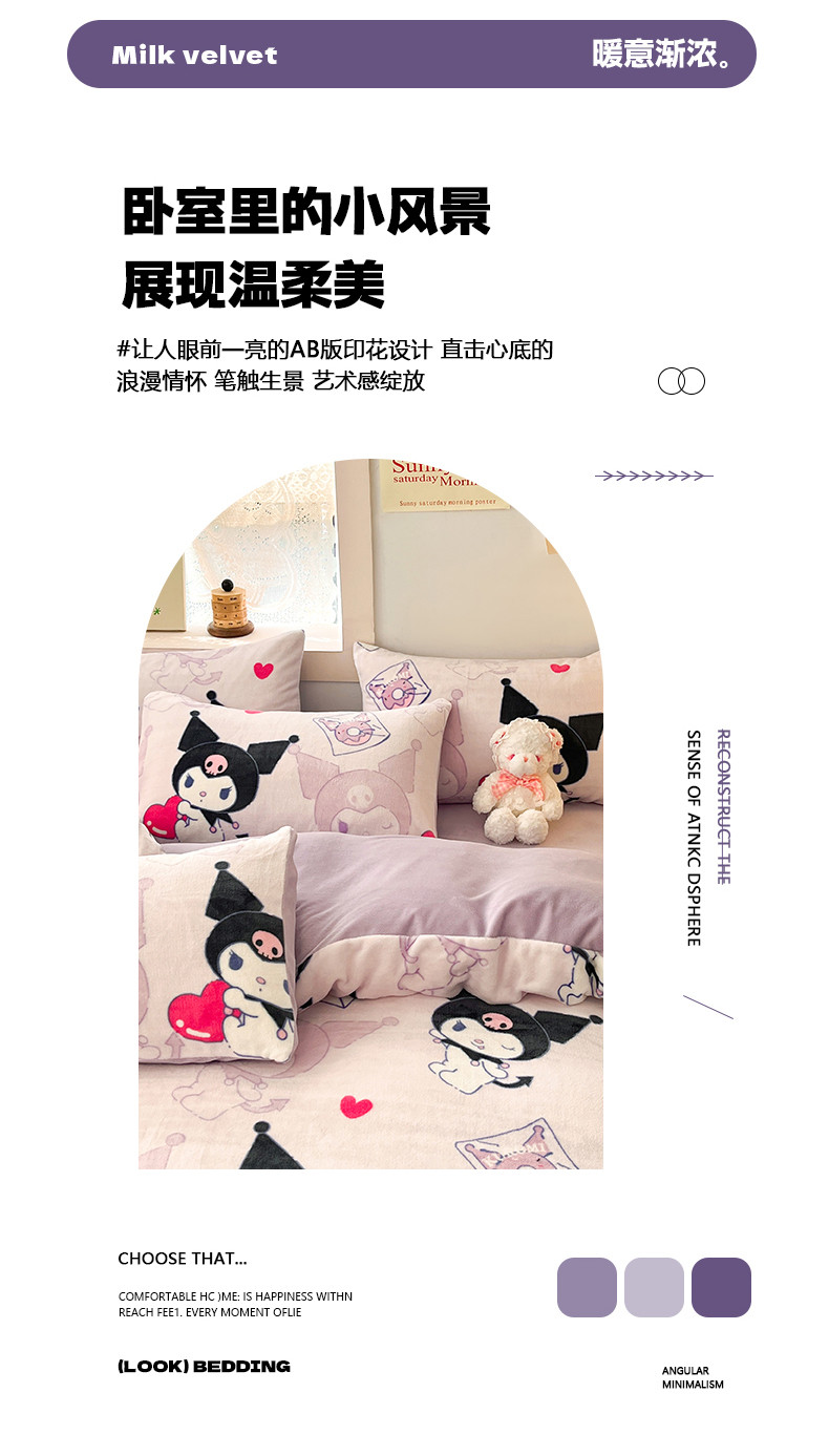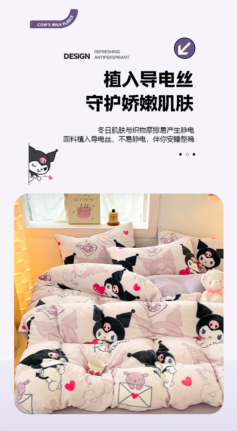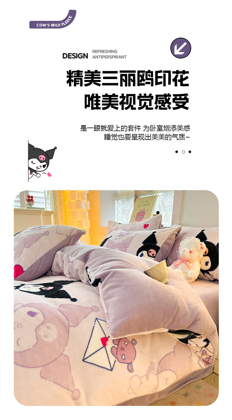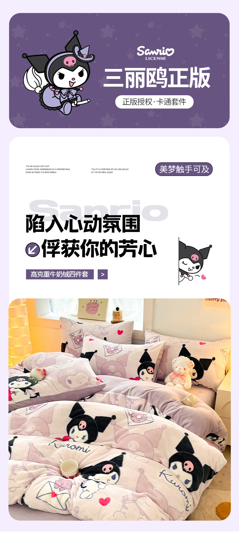 (总)七七家纺 2025新款三丽鸥高克重牛奶绒四件套
