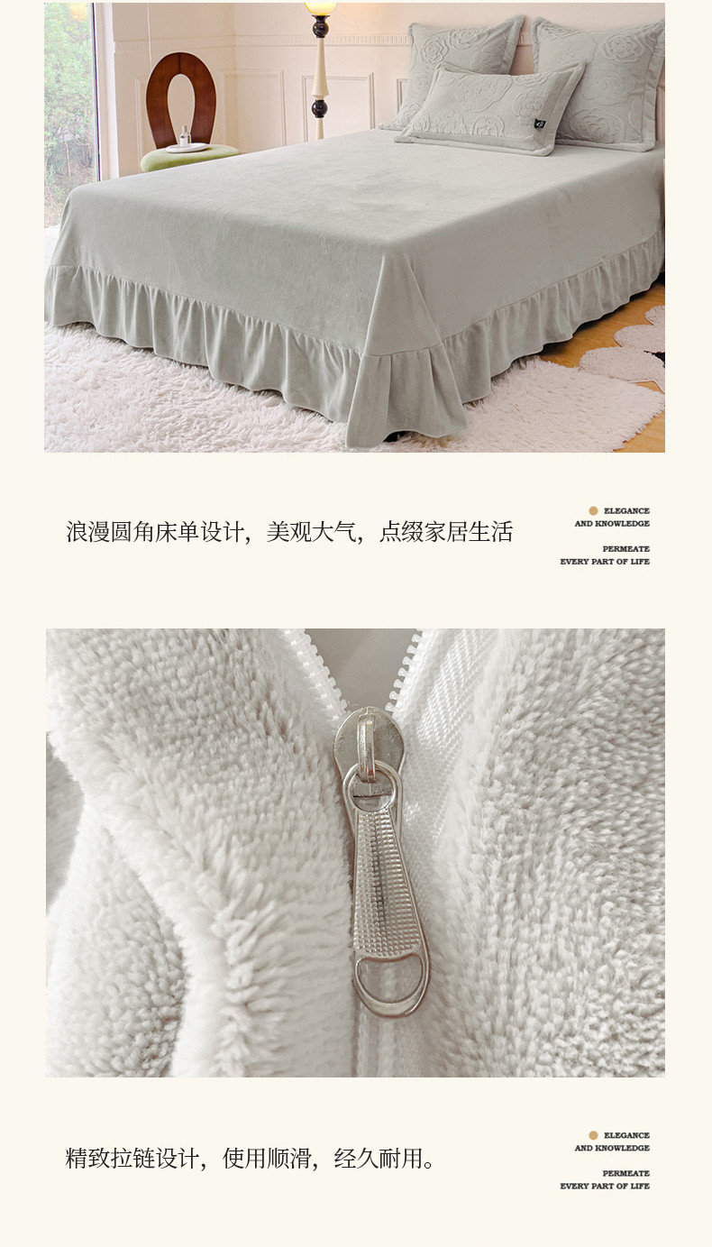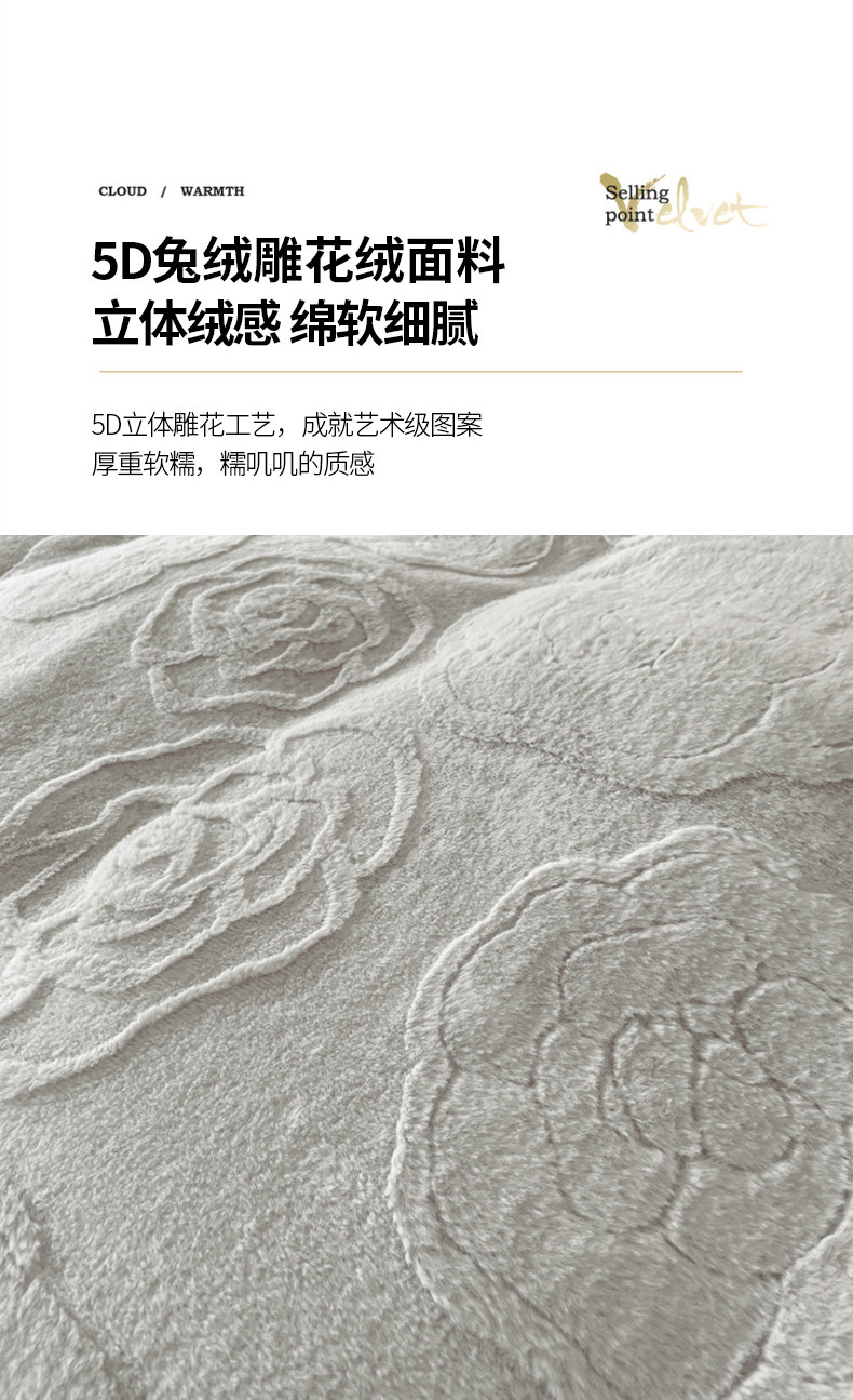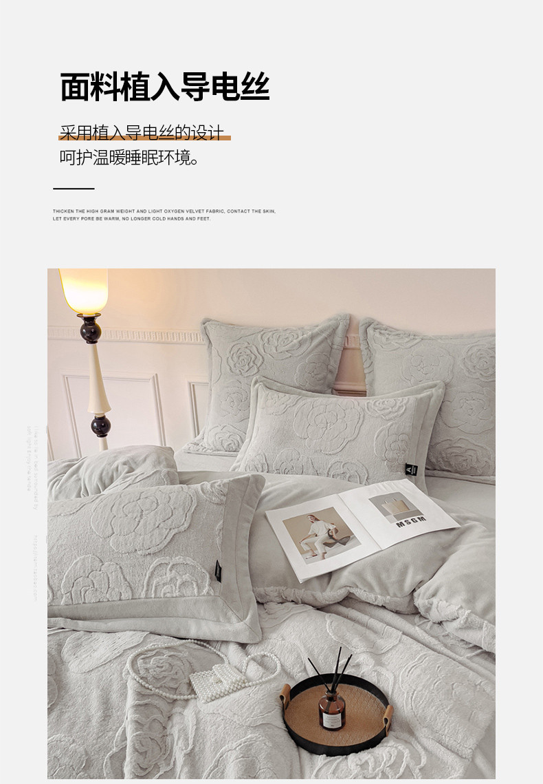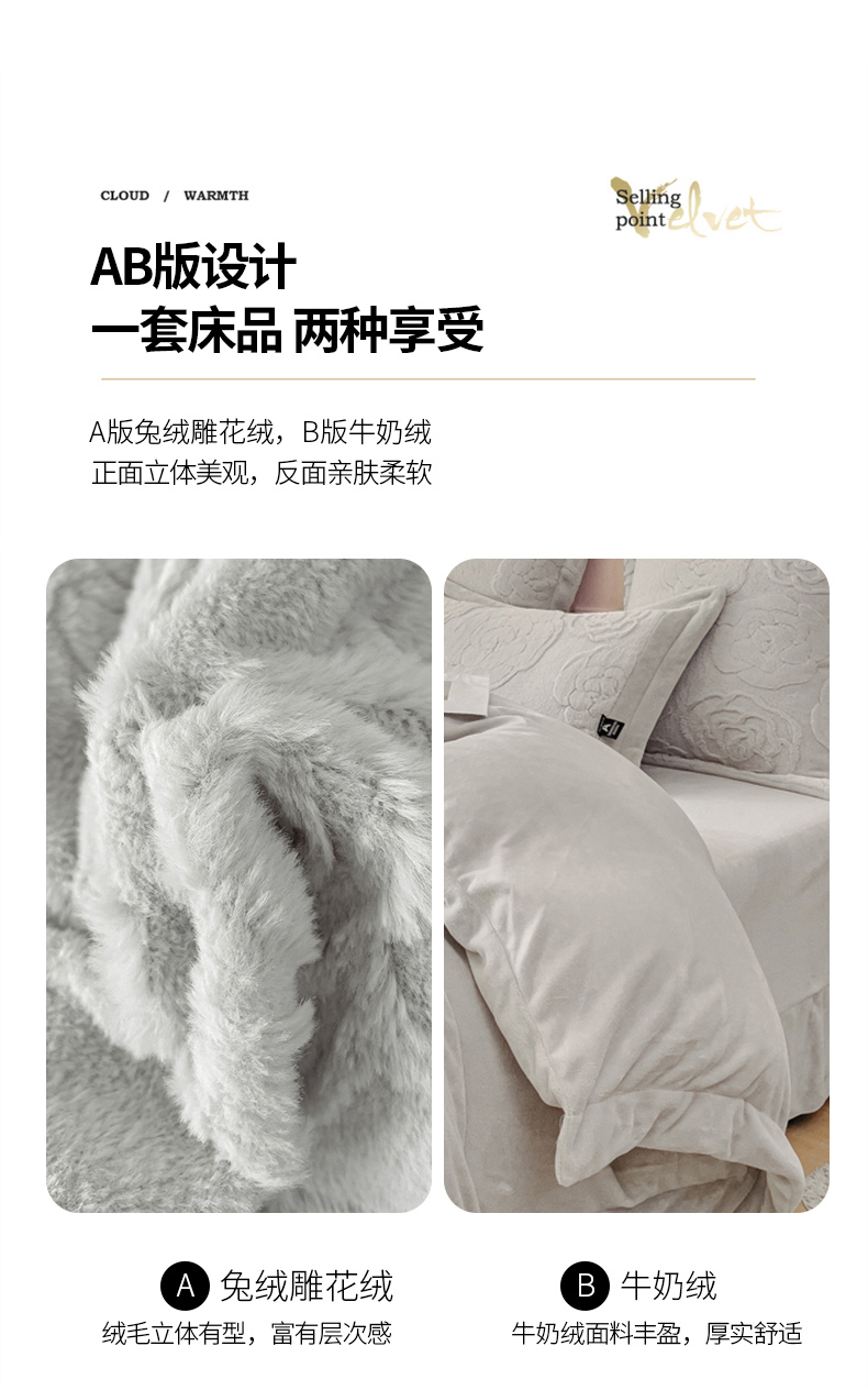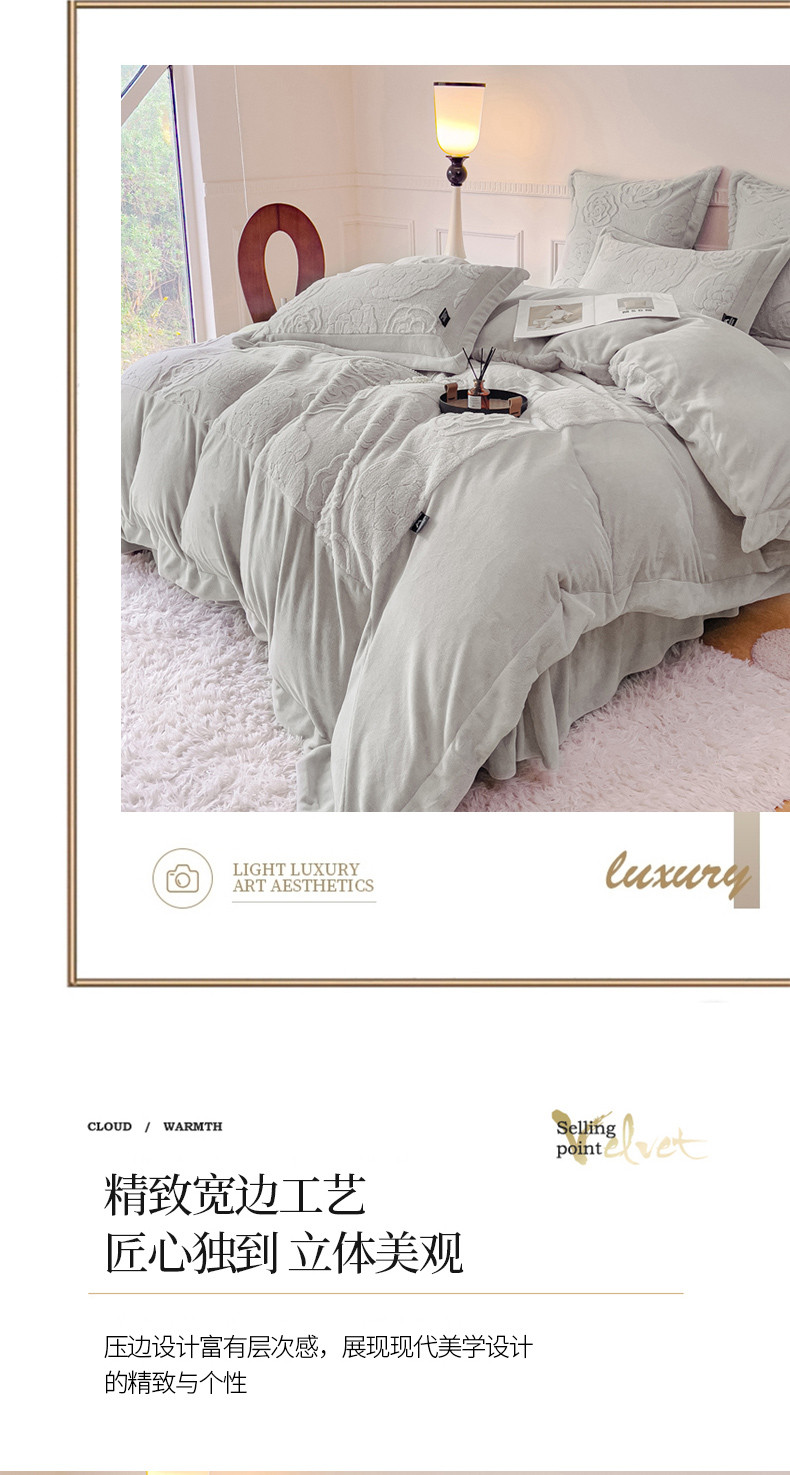 商品名称:品家居 2025新款AB版高克重兔绒牛奶绒四件套-花颂 花颂-灰色