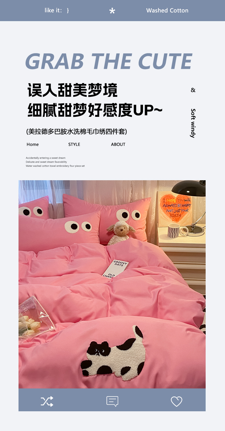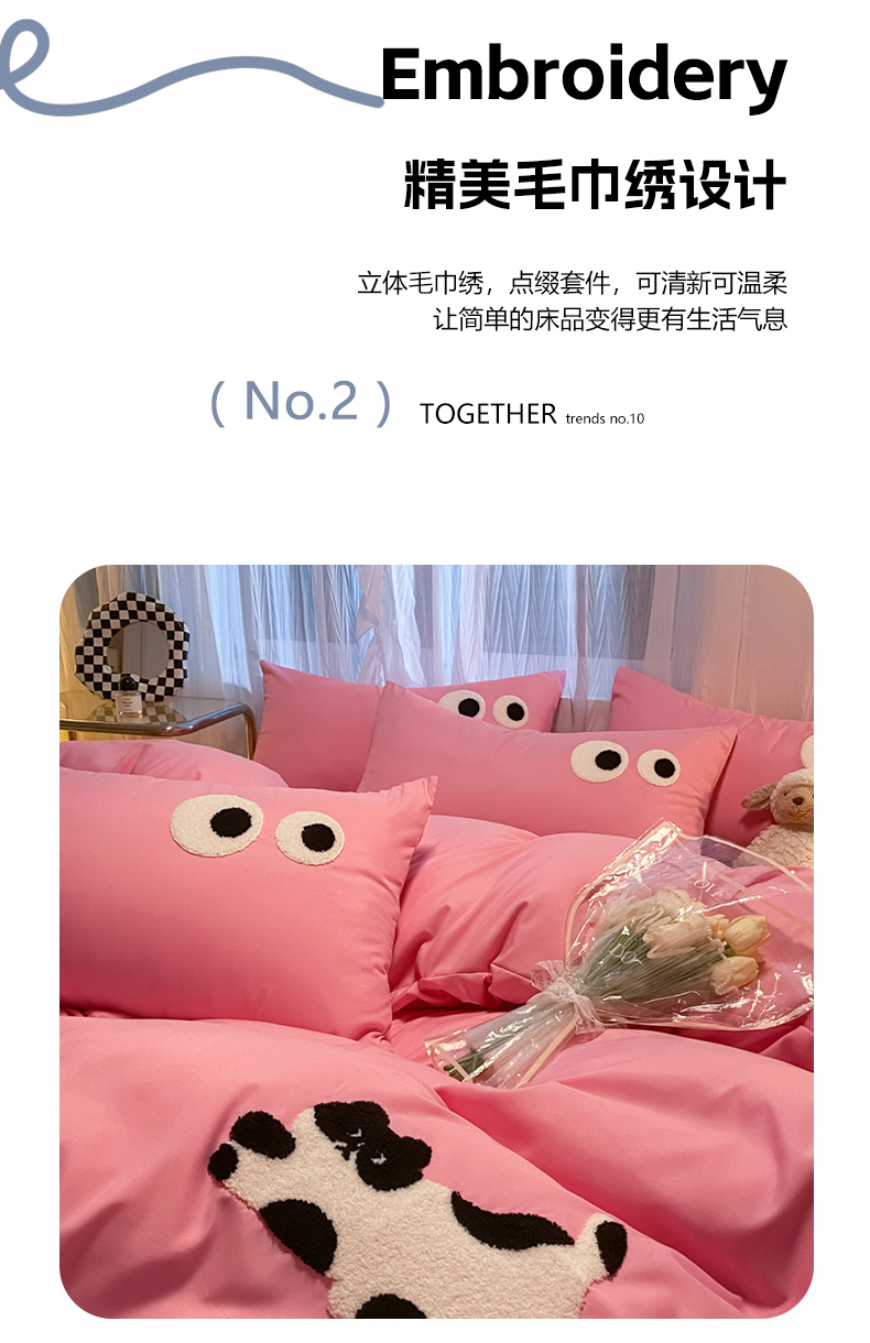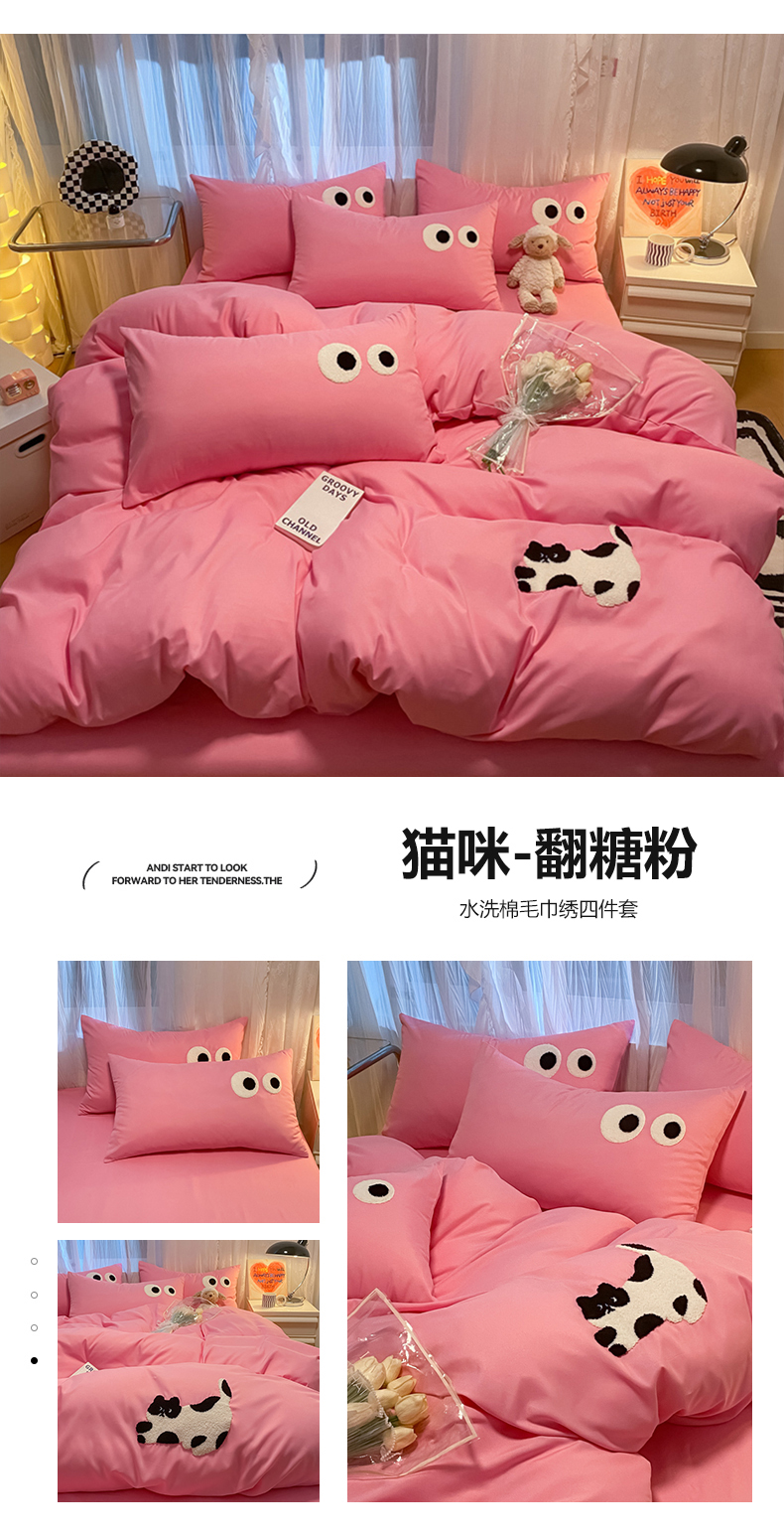 商品名称:N先生 2024新款美拉德多巴胺毛巾绣四件套-猫咪系列 猫咪-翻糖粉