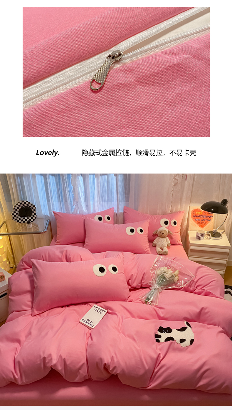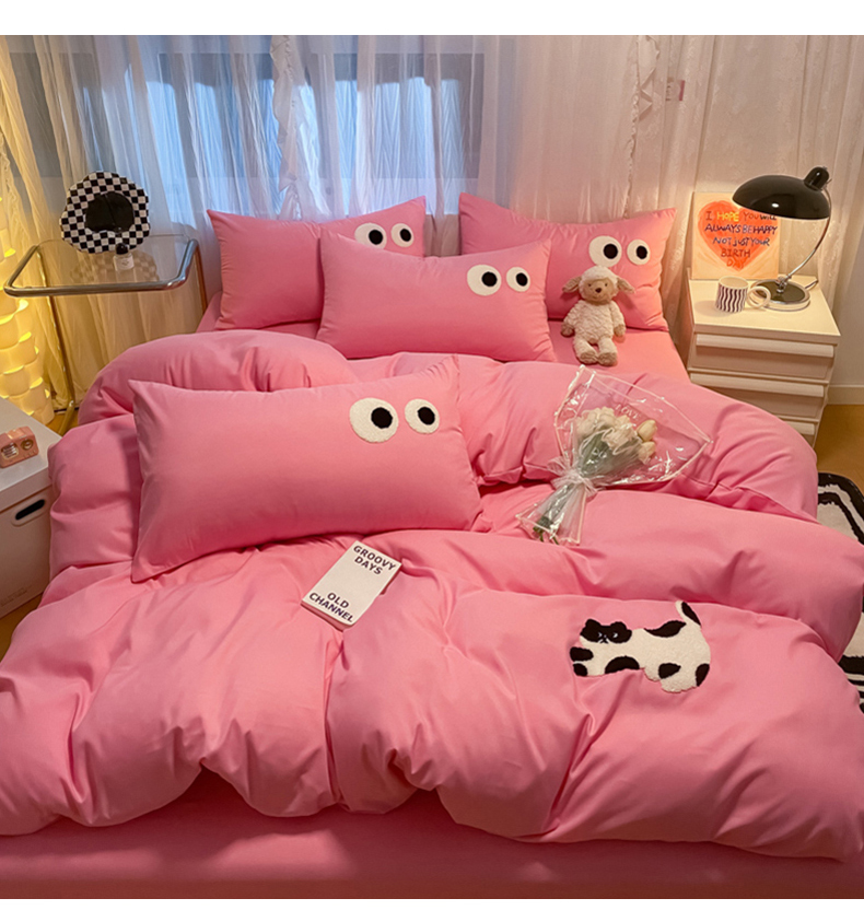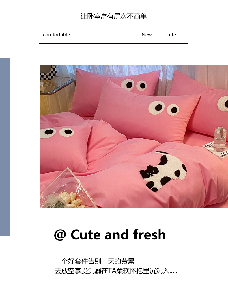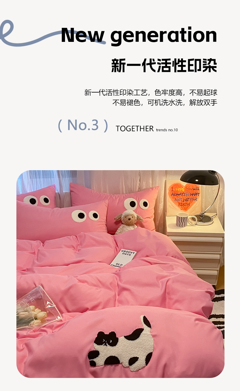 商品名称:N先生 2024新款美拉德多巴胺毛巾绣四件套-猫咪系列 猫咪-翻糖粉
