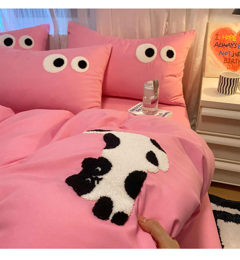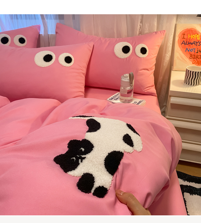 (总)N先生+V 13814689556 发大图/买家秀 2025新款韩式博主风花边款ins卡通牛奶绒四件套,爱心美蒂,彩色蝴蝶结,格子兔兔,欢乐猫咪,可爱熊仔,快乐独角兽,美梦甜心,波点狗狗,顽皮帕恰
