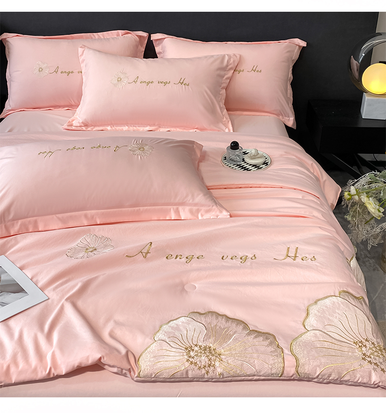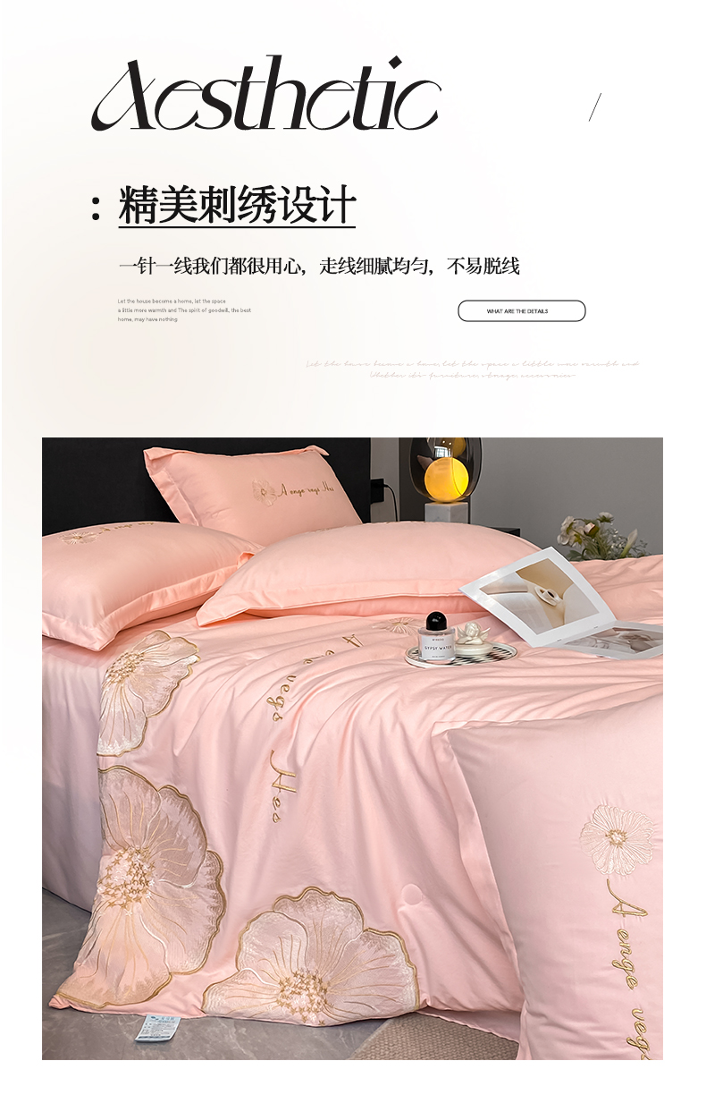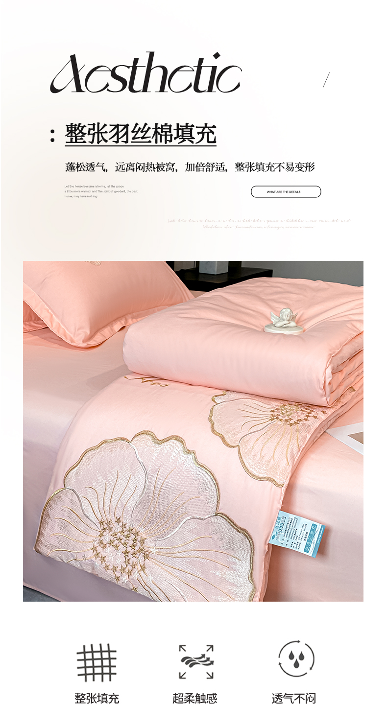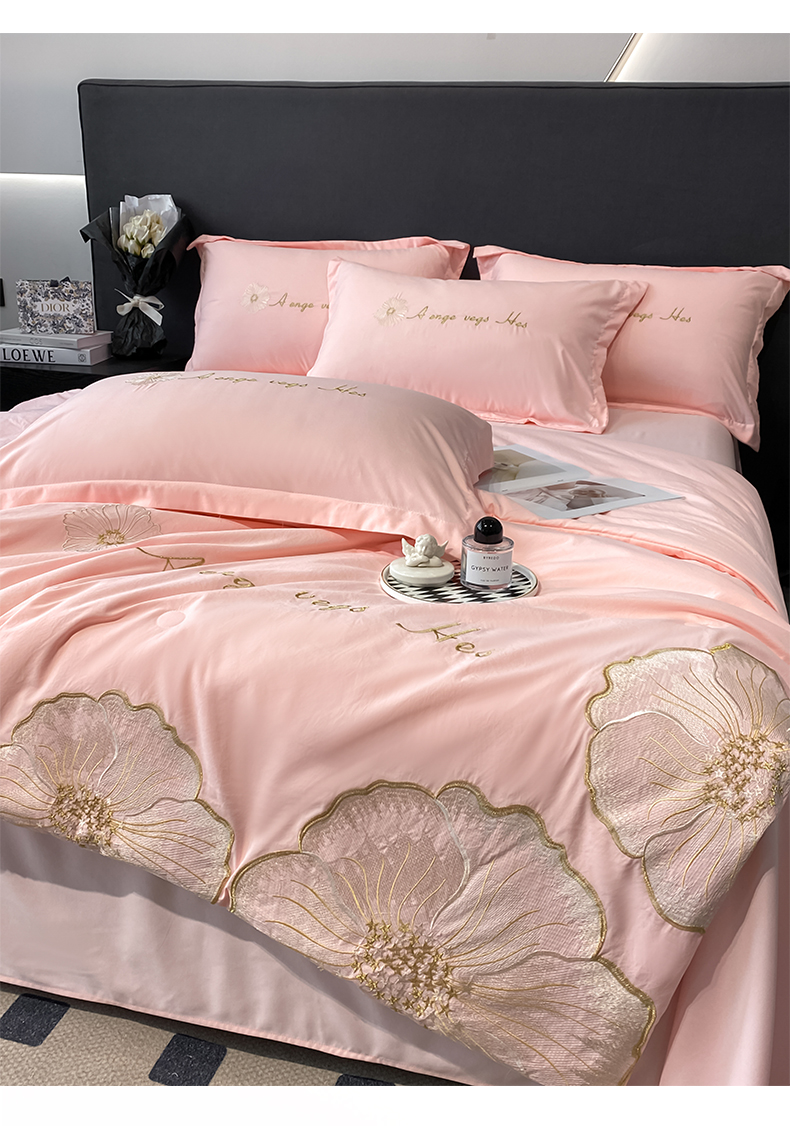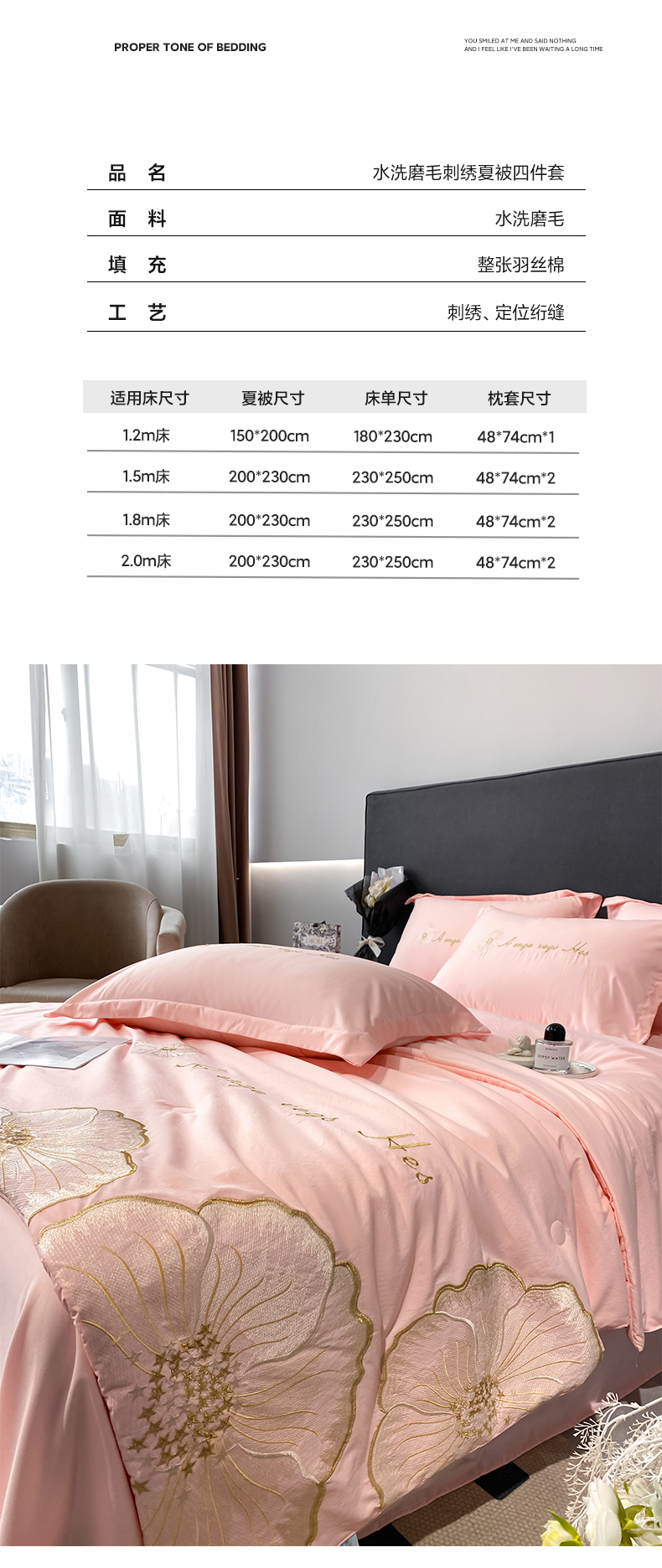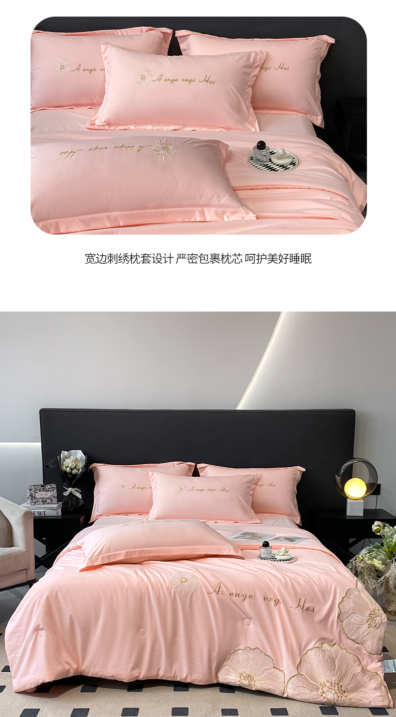 商品名称:你好美丽 2025新款水洗磨毛刺绣夏被四件套-花开盛夏 花开盛夏-粉玉