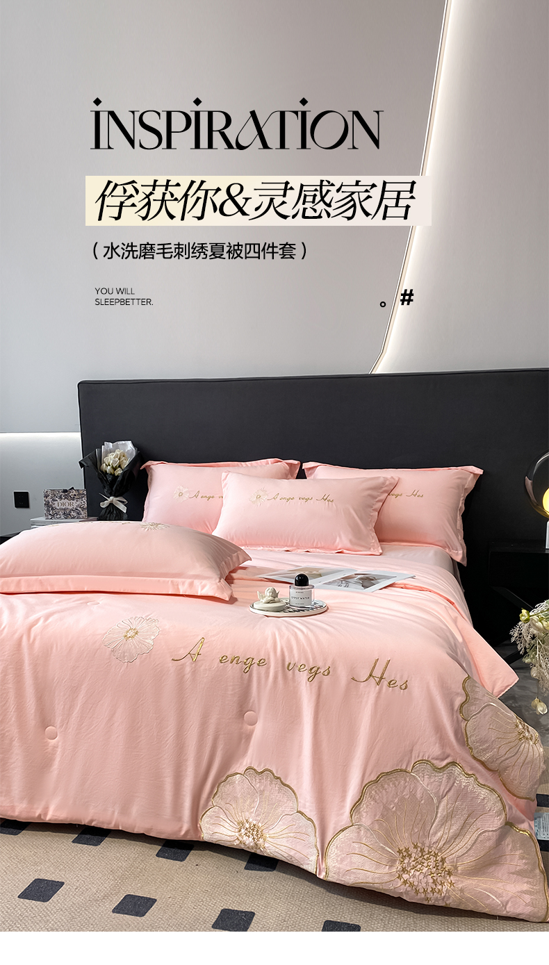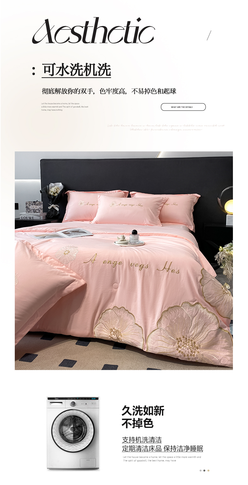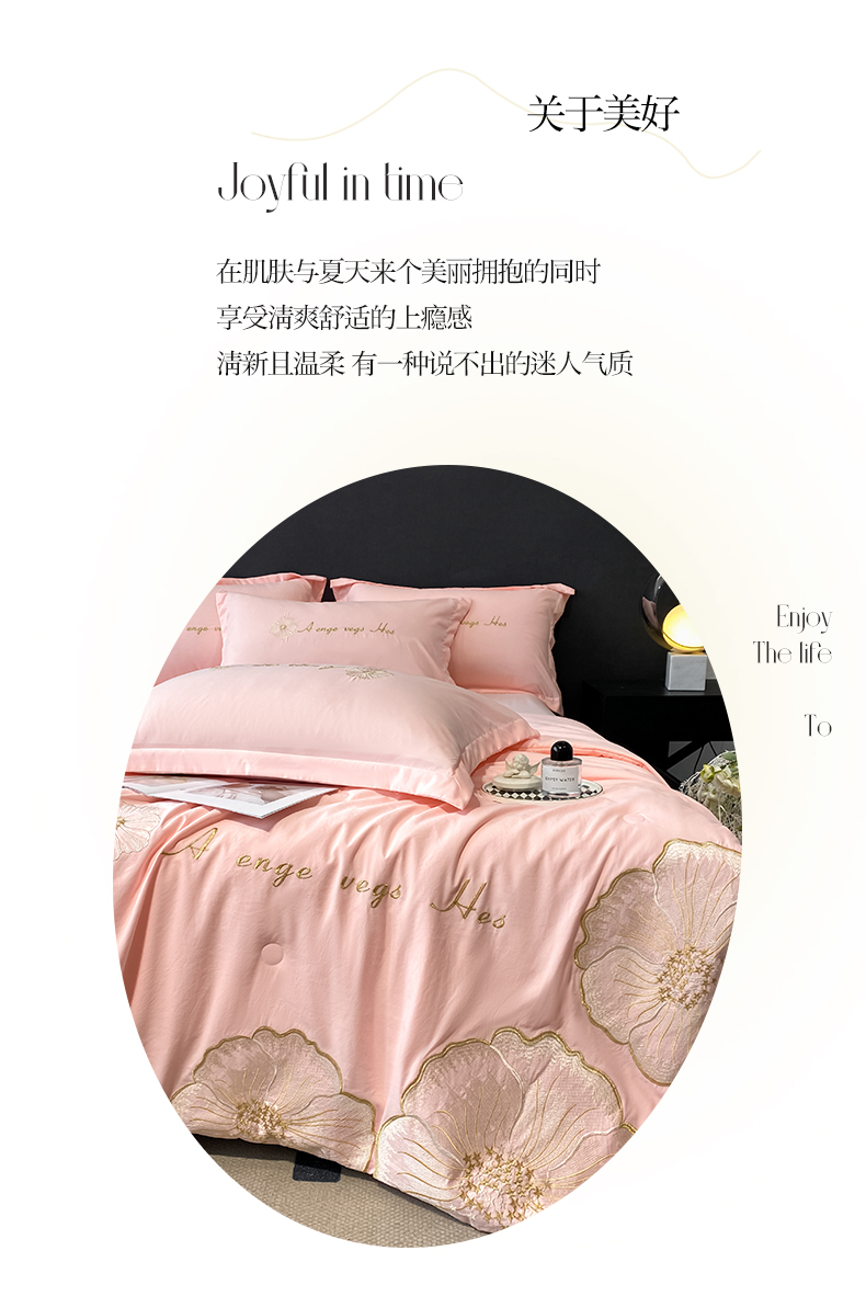 你好美丽 2025新款水洗磨毛刺绣夏被四件套-花开盛夏 花开盛夏-粉玉