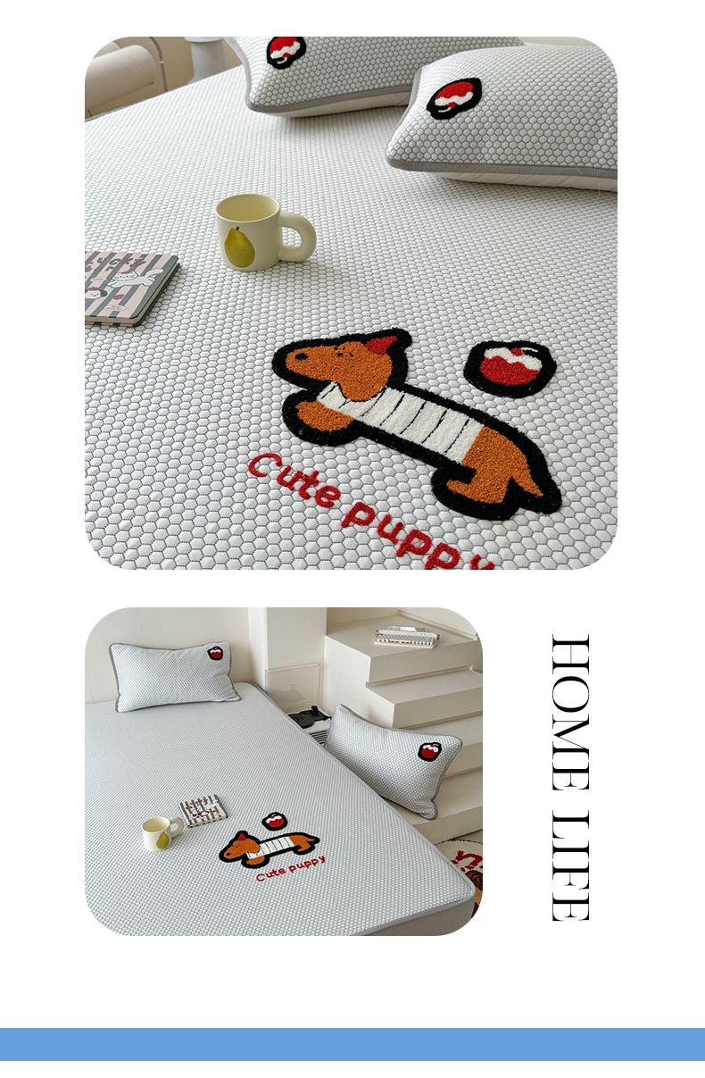 (总)暖生活 2025新款牛奶绒贴布绣工艺款床盖四件套 (会员-5元),排排队,小狗漫步