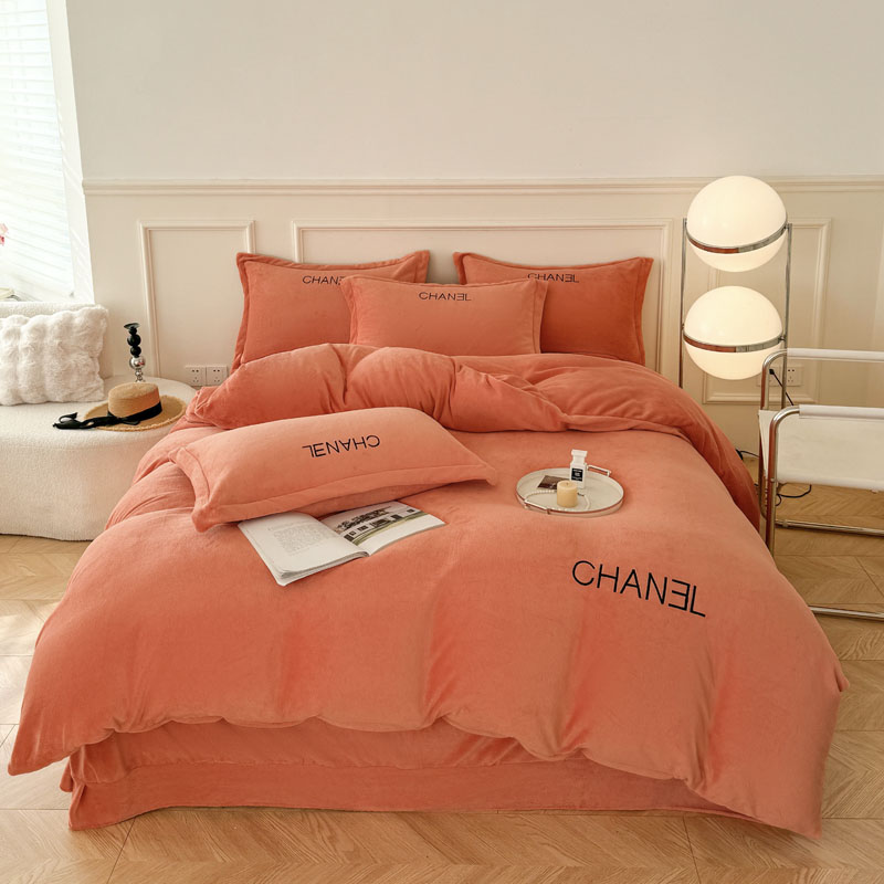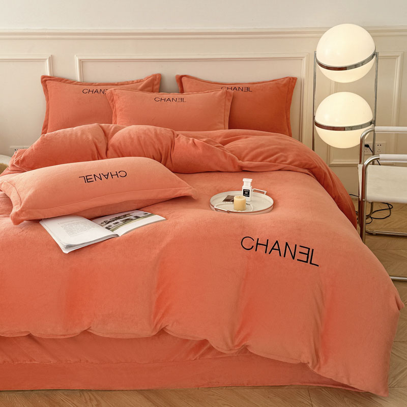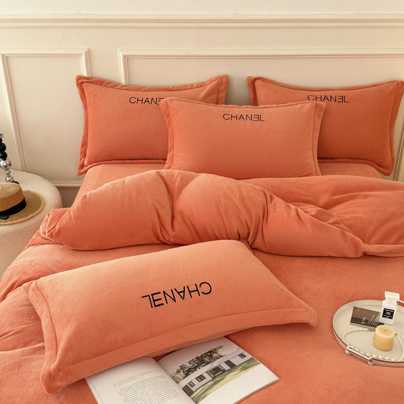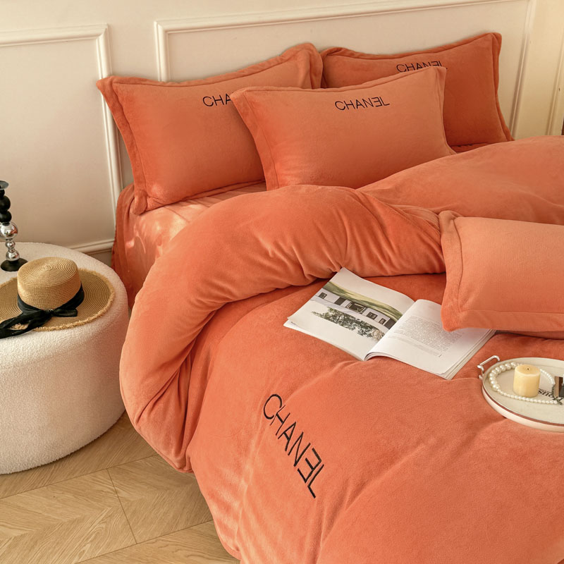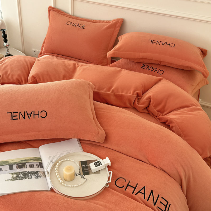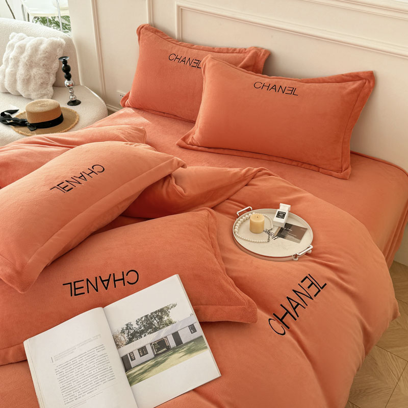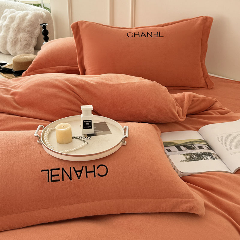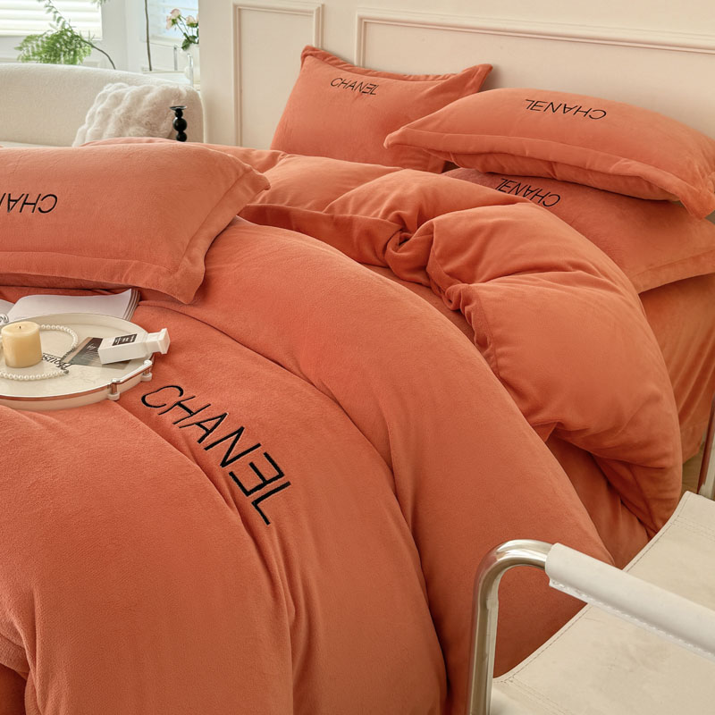 仟网汇 2024新款刺绣双面牛奶绒四件套 橘色