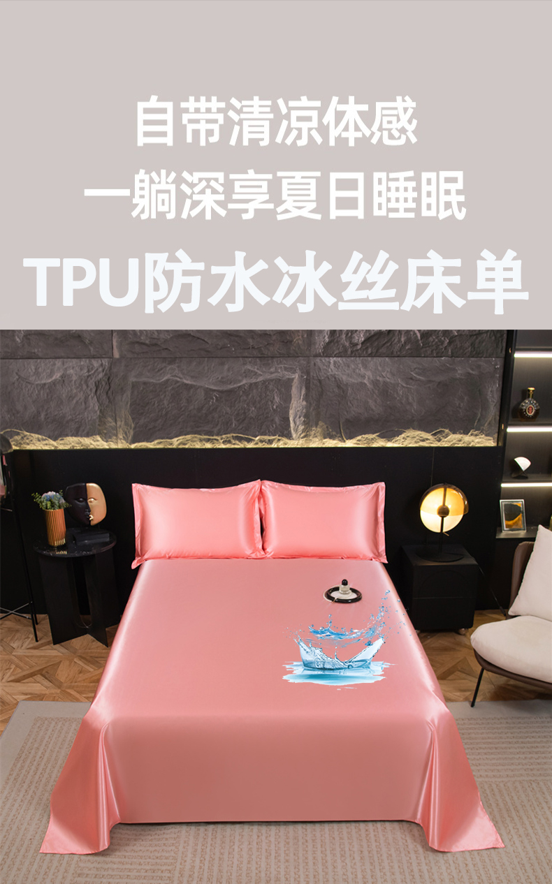 商品名称:圣比熊2025新款防水冰丝纯色床单凉爽柔顺宿舍双人床单 防水款-玉色