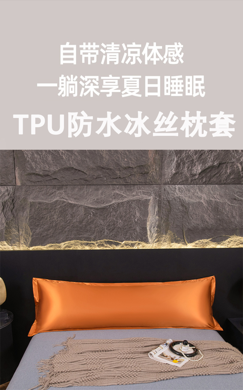 商品名称:圣比熊2025新款防水冰丝纯色双人枕套情侣1.8m枕芯套内胆套 防水款-咖啡