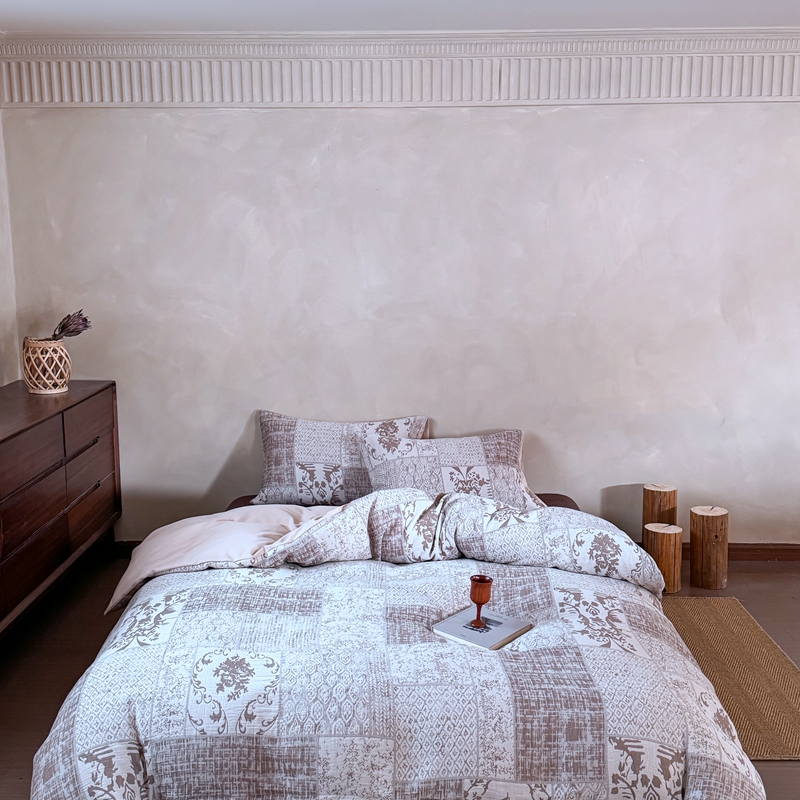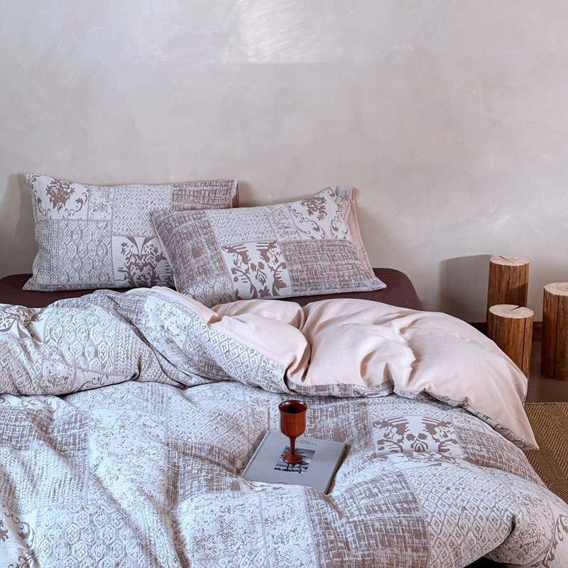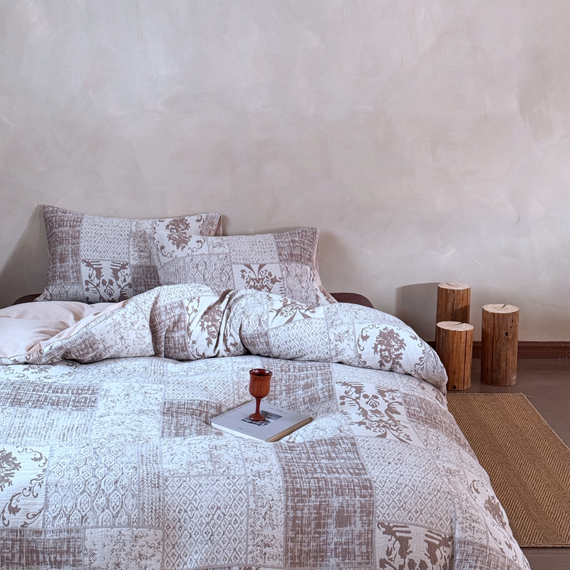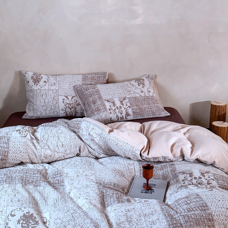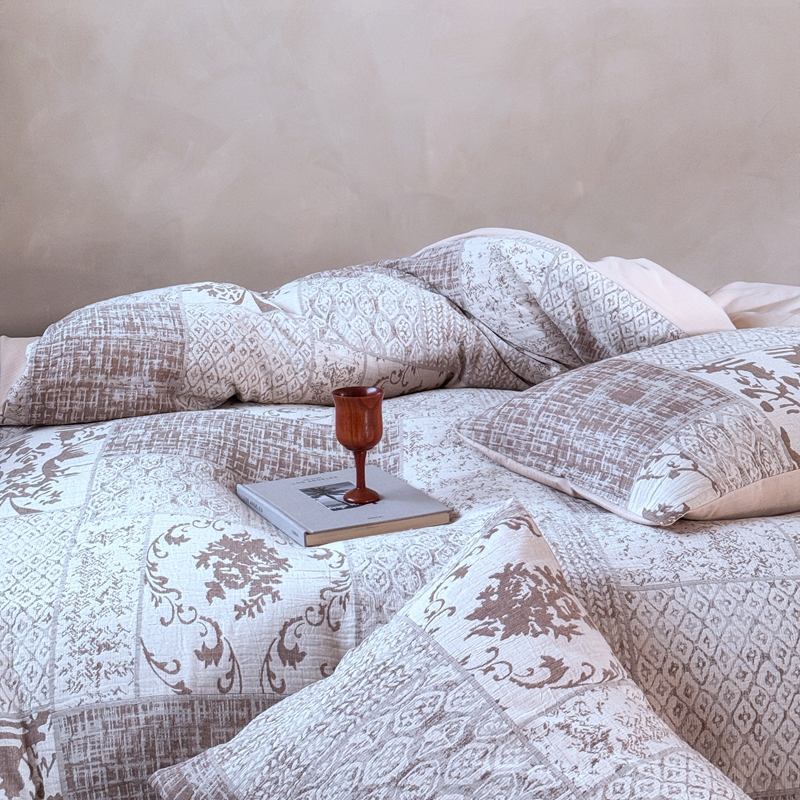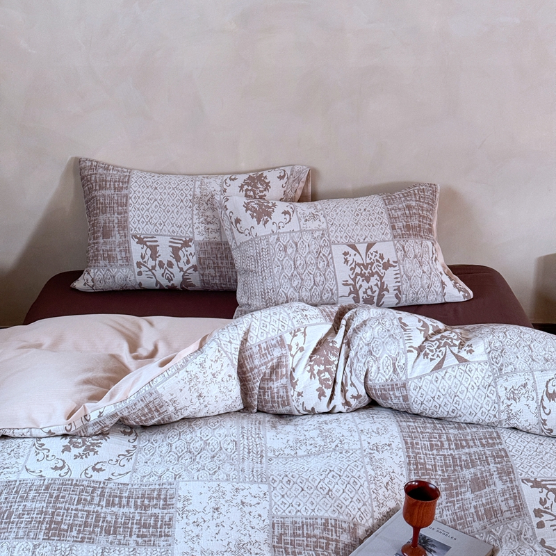 山舍家居 2025新款全棉纯棉色织纱布四件套系列-树下萨瓦呢(棚拍二) 树下萨瓦呢-棕