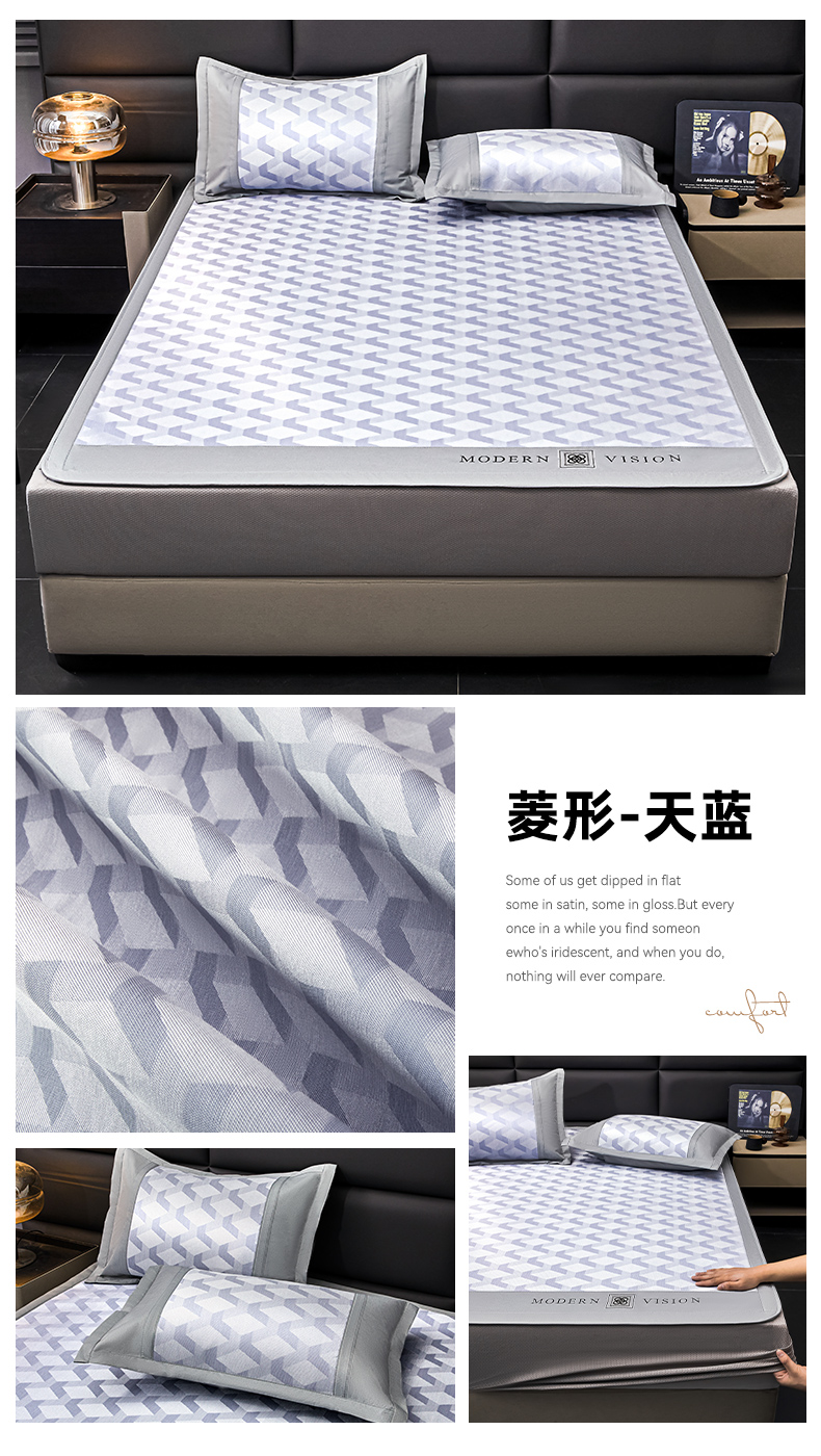 当前位置: 91家纺网 > 商品网购 > 床上用品 > 凉席 > 凉席套件 > 全季家居 2025新款5A抗菌3D立体冰柔凉感冰丝席 菱形-天蓝 床笠款