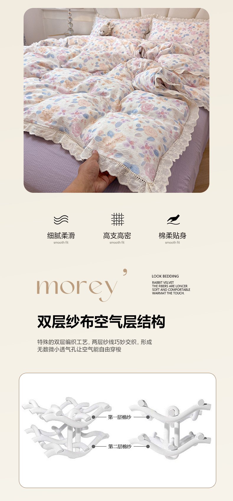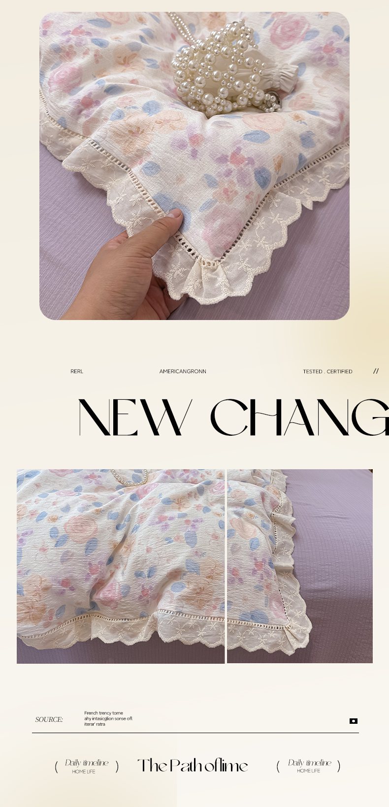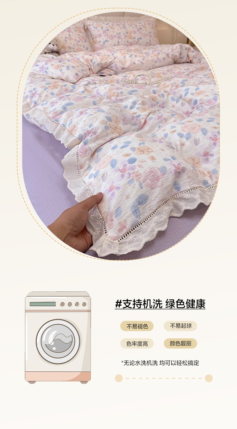 当前位置: 91家纺网 > 商品网购 > 床品套件 > 四件套 > 其它四件套 > 韩巢家纺 2025新款双层纱镂空花边被套直播热销款四件套(提供卖家秀) 镂空花边款-时间画报-米
