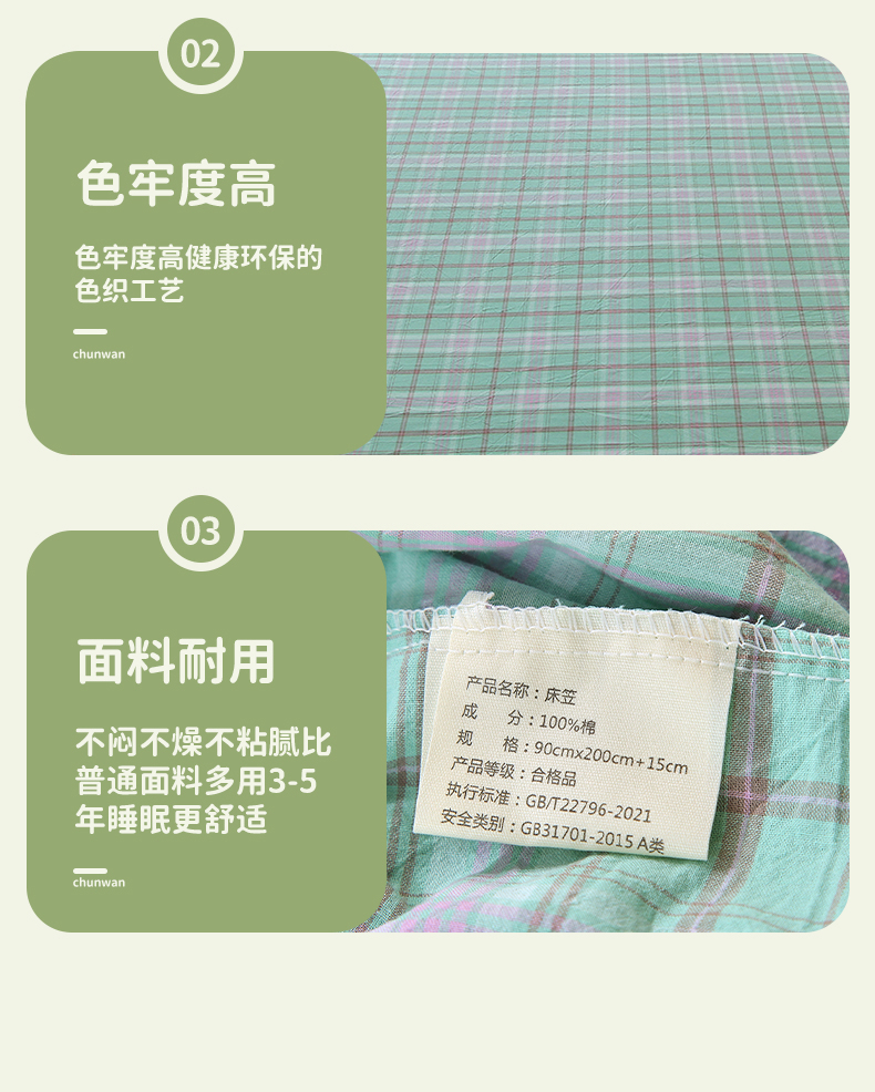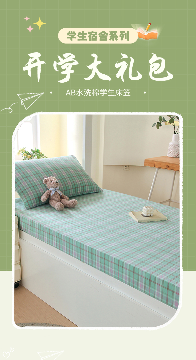 • 91家纺网 家纺一手货源 找家纺 春皖家纺 2025新款学生季全棉纯棉色织AB版水洗棉单品系列-单床笠 床笠单件 素雅-情调
