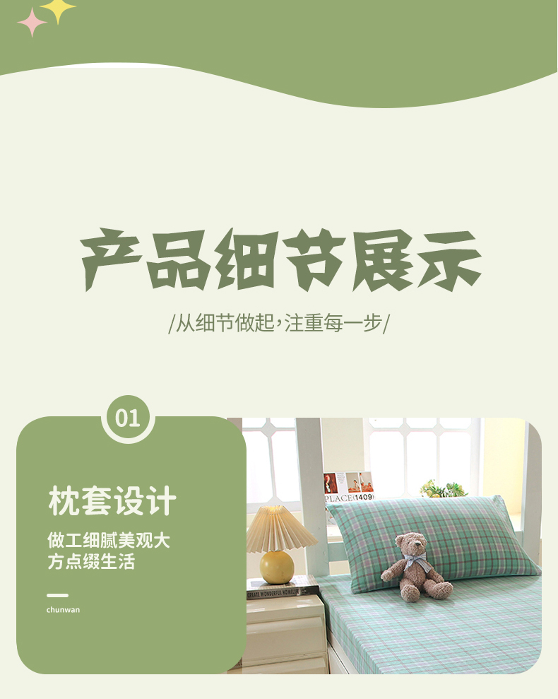 当前位置: 91家纺网 > 商品网购 > 床上用品 > 床笠 > 春皖家纺 2025新款学生季全棉纯棉色织AB版水洗棉单品系列-单床笠 床笠单件 素雅-情调