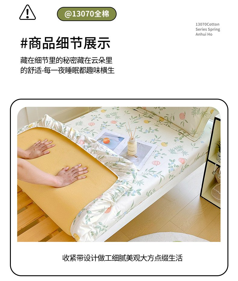 • 91家纺网 家纺一手货源 找家纺 春皖家纺 2025新款学生季全棉纯棉13070印花单床笠 床笠单件 彩叶集福