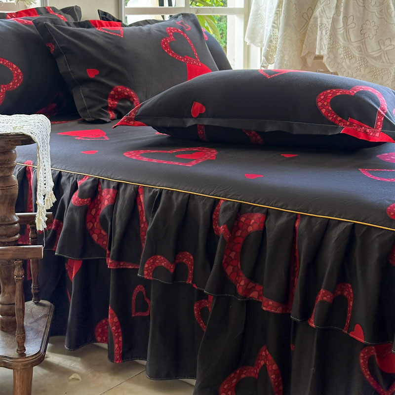 (总)2021新款韩版夹棉床裙四件套,碧影星慧,玫瑰-粉,玫瑰-紫,那时花开,桃心,香溢满庭,小雏菊,云朵