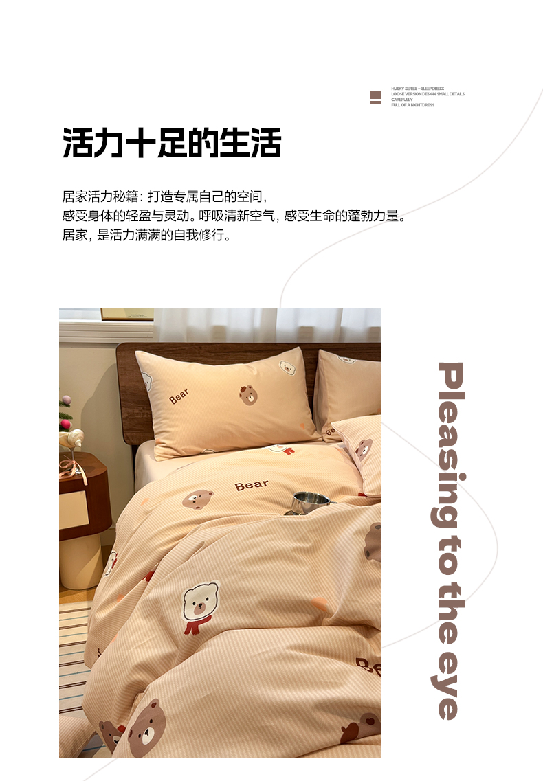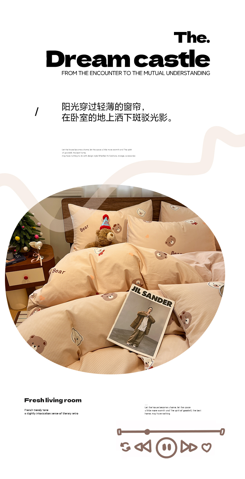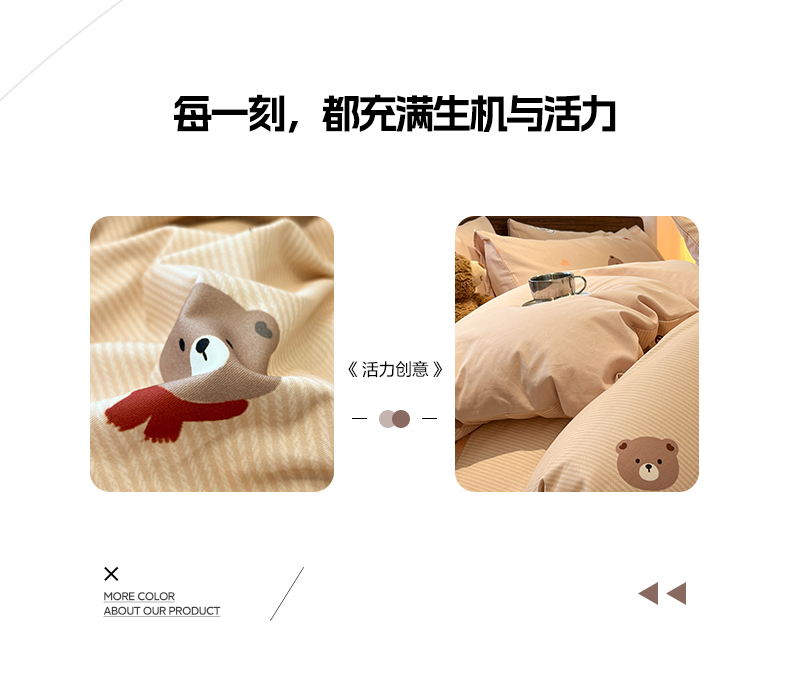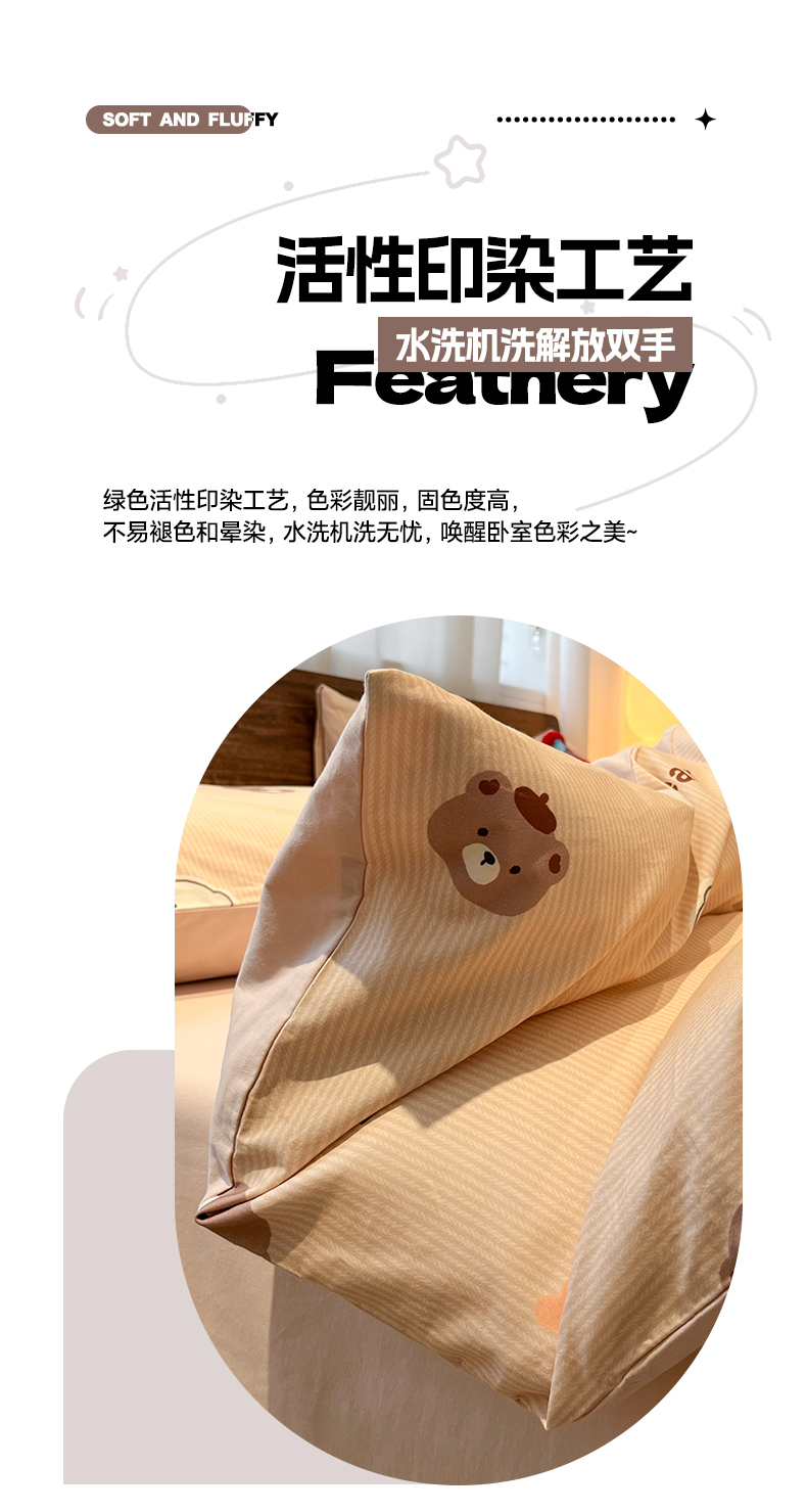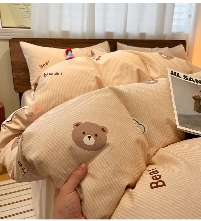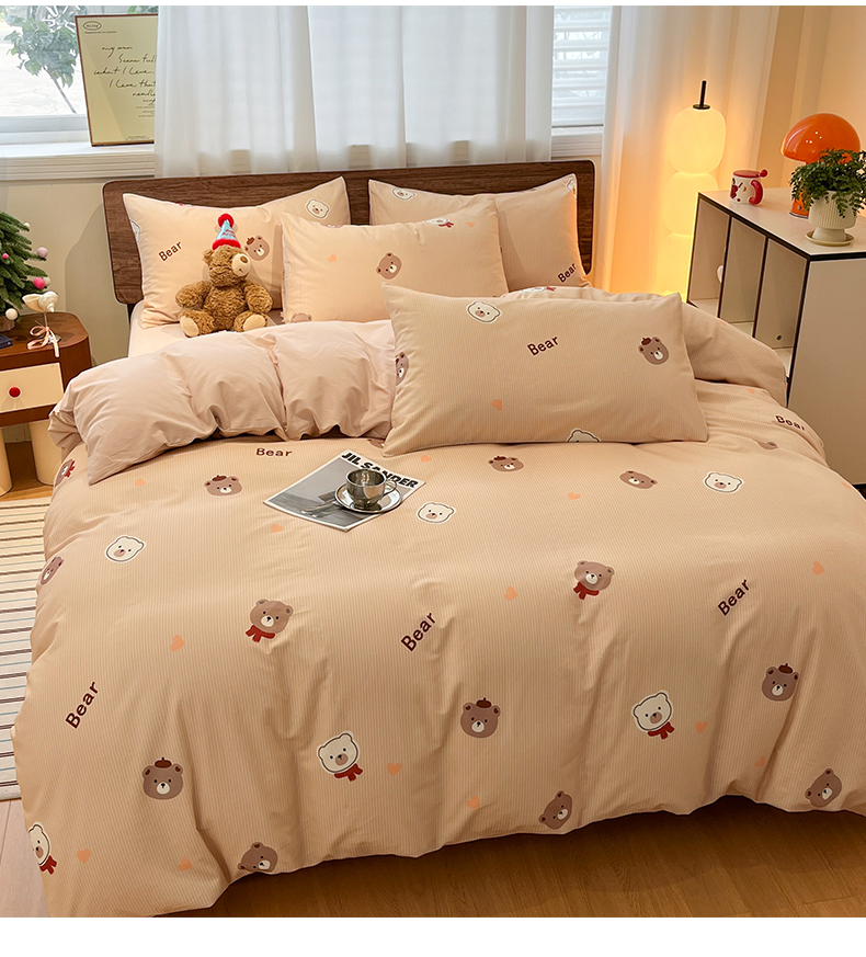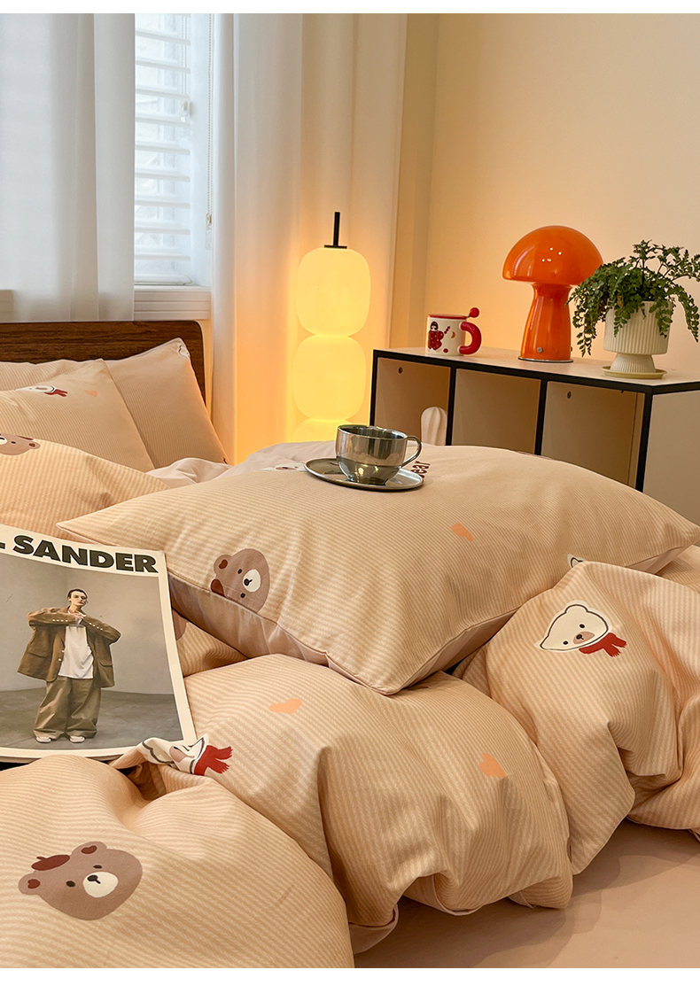 当前位置: 91家纺网 > 商品网购 > 床品套件 > 四件套 > 全棉普通四件套 > 莱登卡奴 2025新款A类100%全棉磨毛条格卡通系列四件套 告白熊