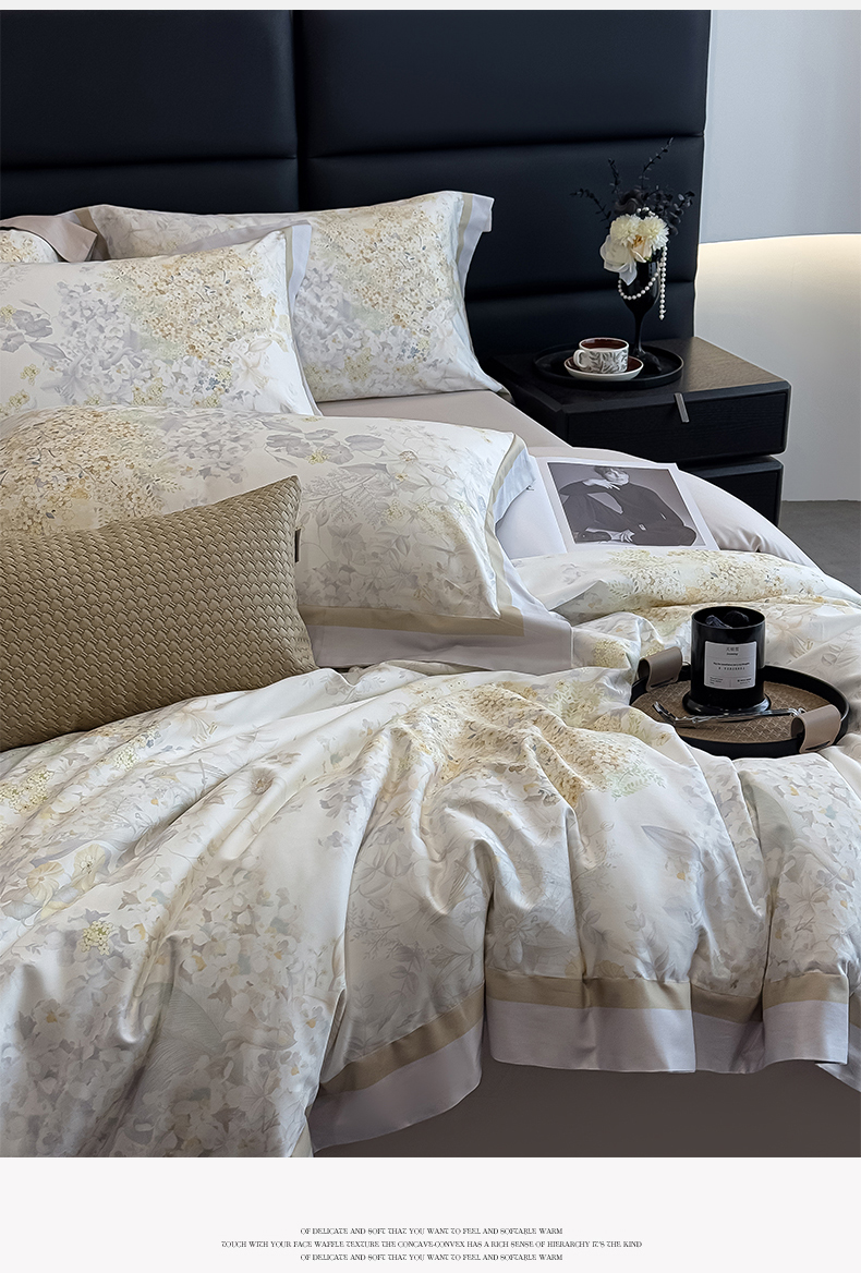 (总)朵希曼 2026新款轻奢全棉提花系列四件套,蝶恋-粉,极简深蓝,南枝-蓝,晚棠 红,知画-灰,织梦 紫