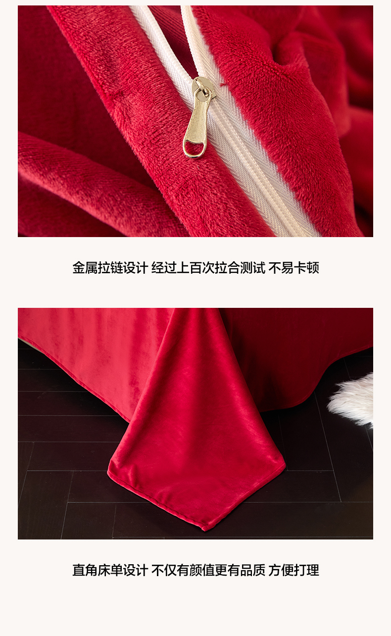 • 91家纺网 家纺一手货源 找家纺 如一 2025新款水晶绒纯色刺绣四件套-银杏系列 银杏-中国红
