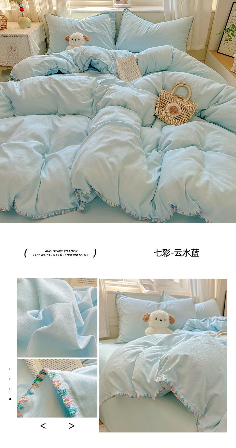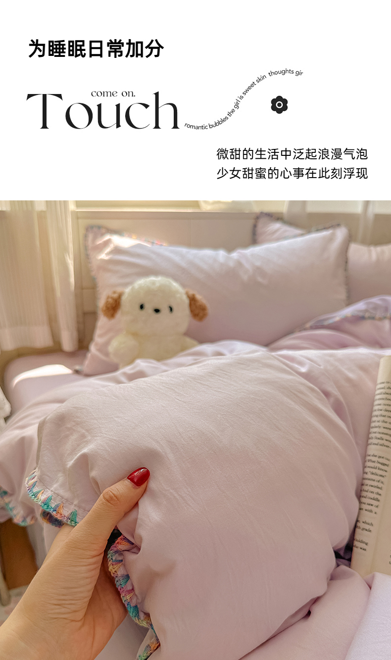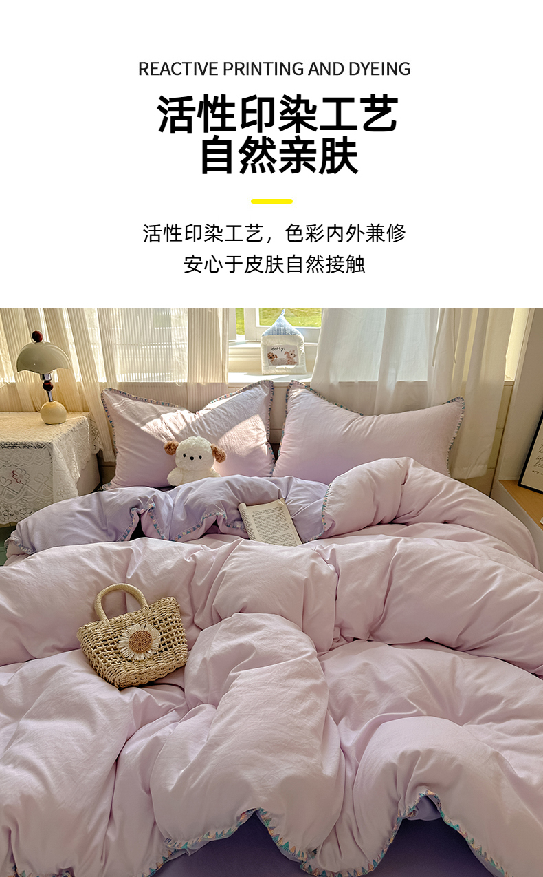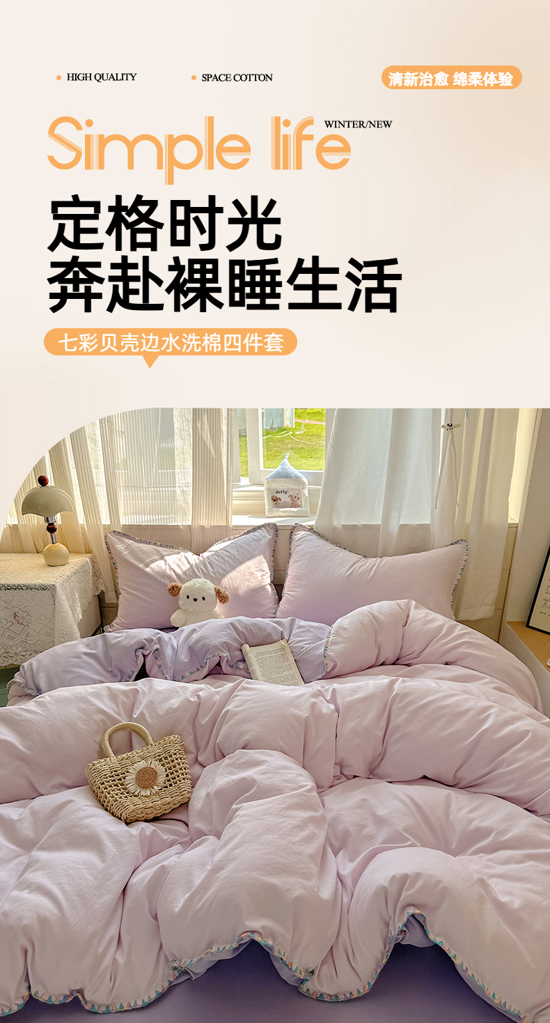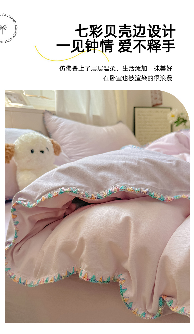 当前位置: 91家纺网 > 商品网购 > 床品套件 > 四件套 > 水洗棉四件套 > 冕悠家纺 2025新款A类七彩贝壳边水洗棉四件套 七彩-深紫暮山紫