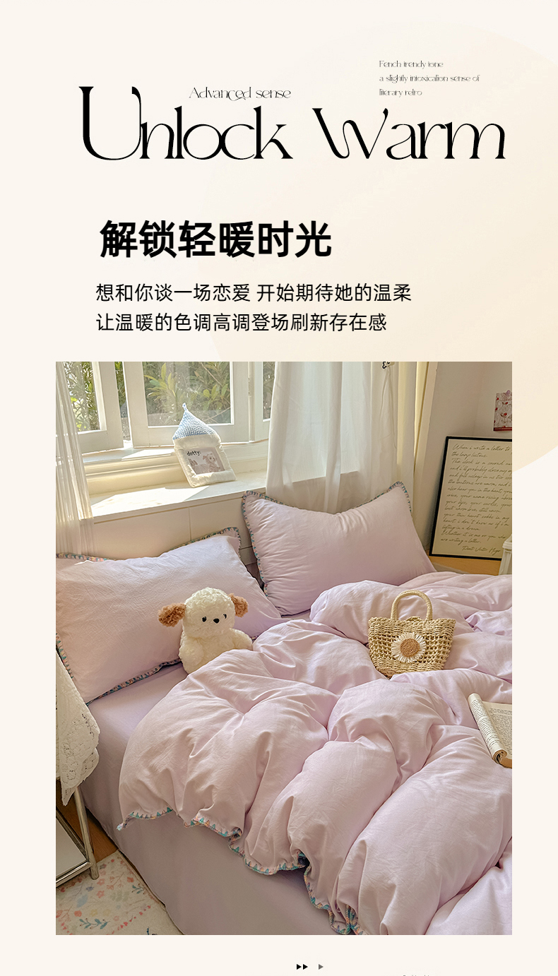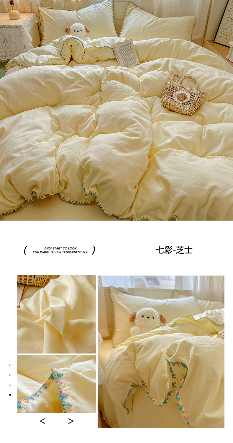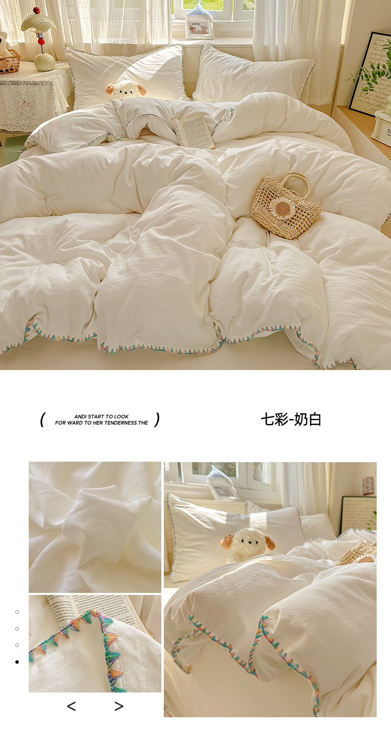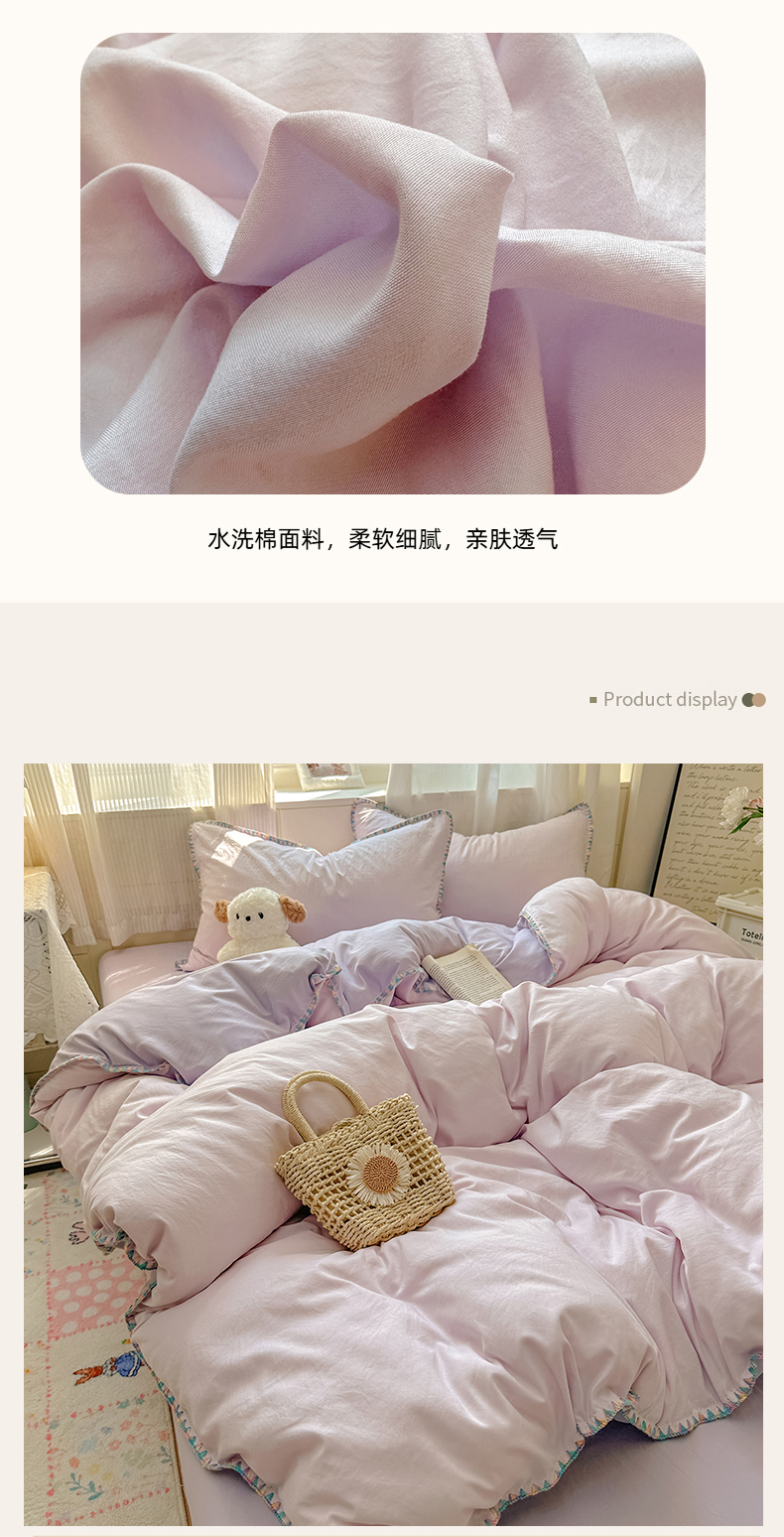 当前位置: 91家纺网 > 商品网购 > 床品套件 > 四件套 > 水洗棉四件套 > 冕悠家纺 2025新款A类七彩贝壳边水洗棉四件套 七彩-深紫暮山紫