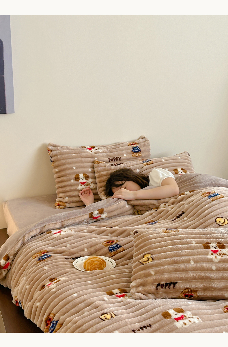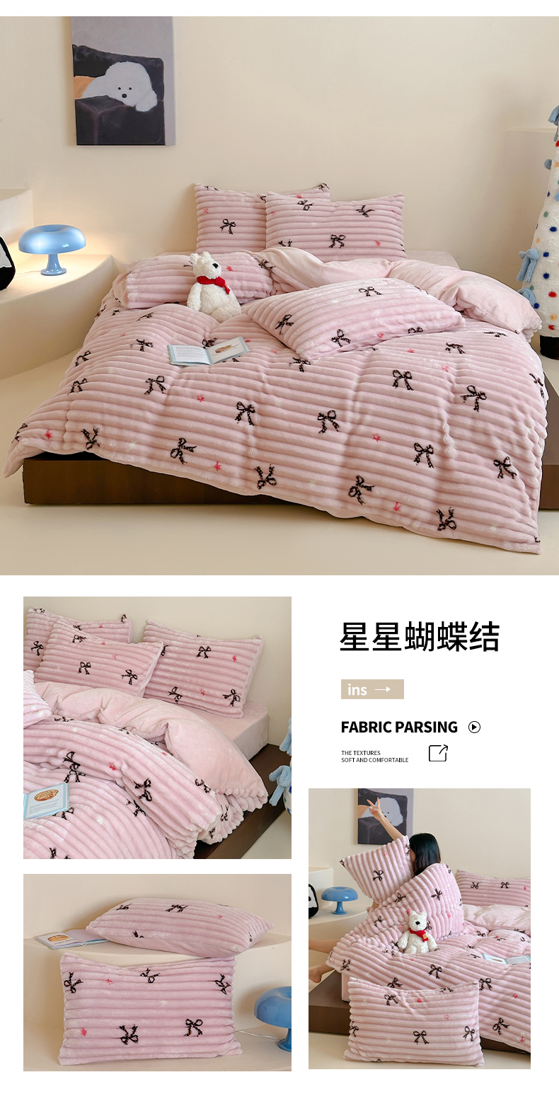 当前位置: 91家纺网 > 商品网购 > 床品套件 > 四件套 > 牛奶绒四件套 > RYB红黄兰 2025新款设计师原创A版抽条兔兔绒B版牛奶绒印花四件套 波点黑猫