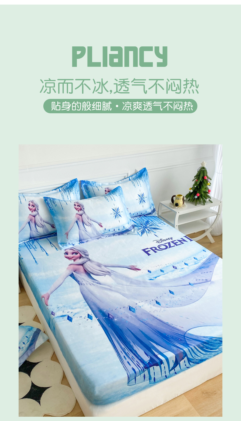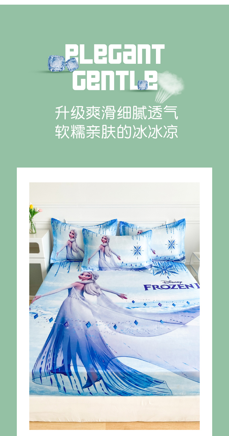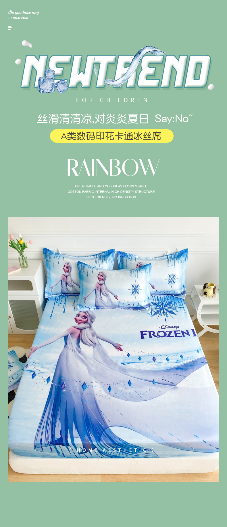 一电 2025新款跨境电商外贸夏季卡通冰丝凉席床笠可水洗学生宿舍单人空调席子 女王