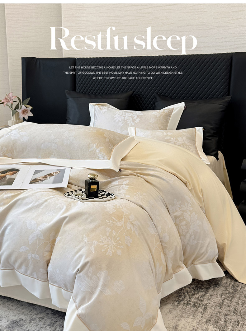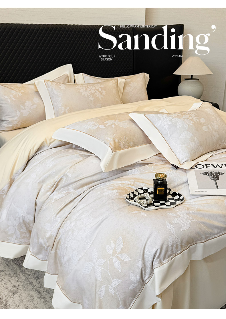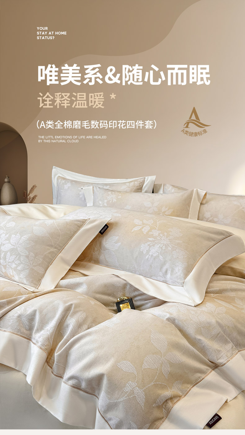 商品名称: 2025冬季热款A类加厚磨毛四件套全棉纯棉数码印花保暖被套床单高端轻奢风床笠床上用品 瑾姝-奶杏