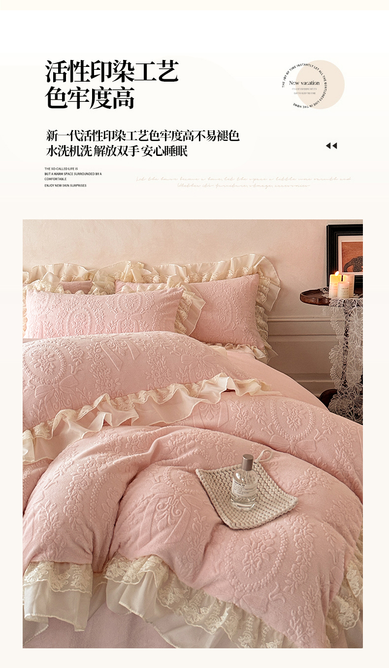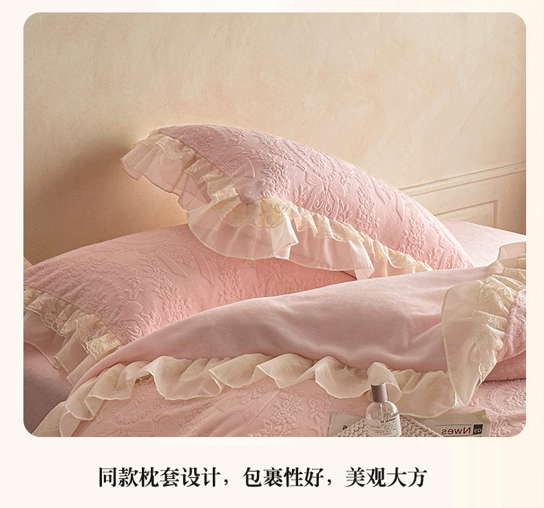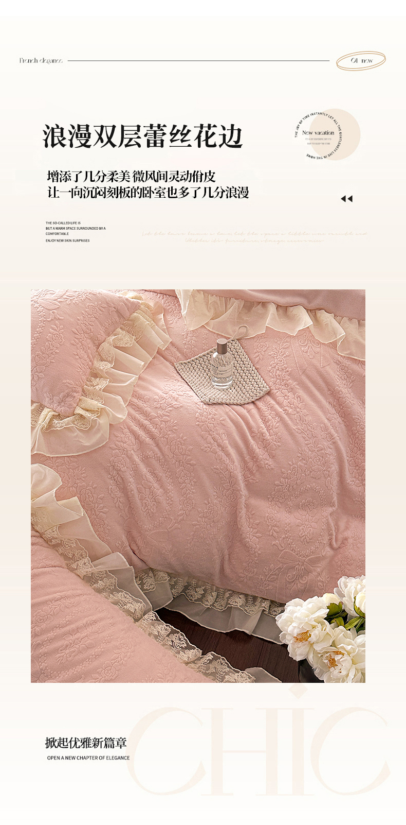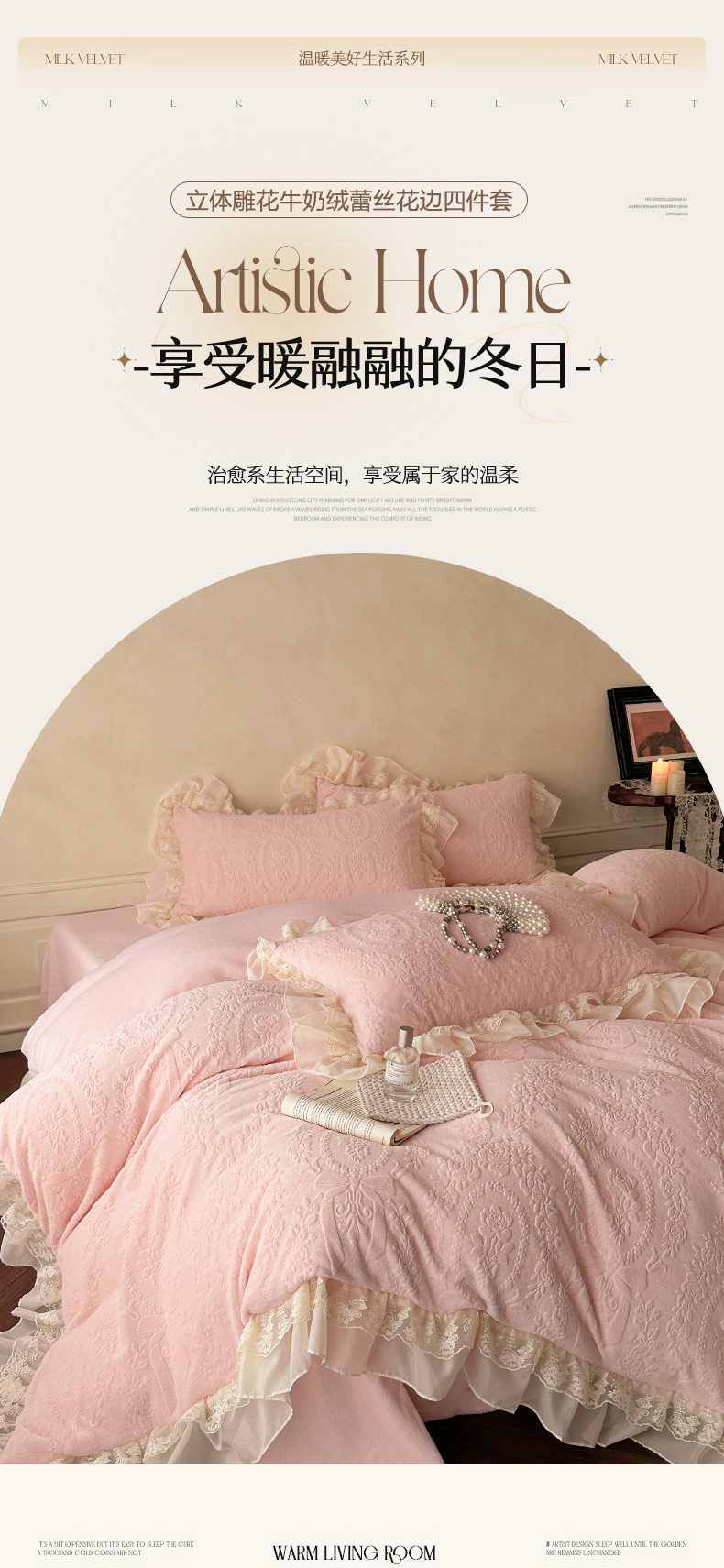 当前位置: 91家纺网 > 商品网购 > 床品套件 > 四件套 > 牛奶绒四件套 > 你好美丽 2025新款立体雕花牛奶绒双层花边四件套-玛丽系列 玛丽粉
