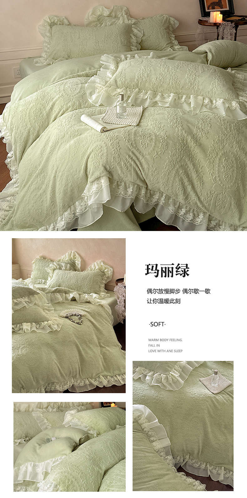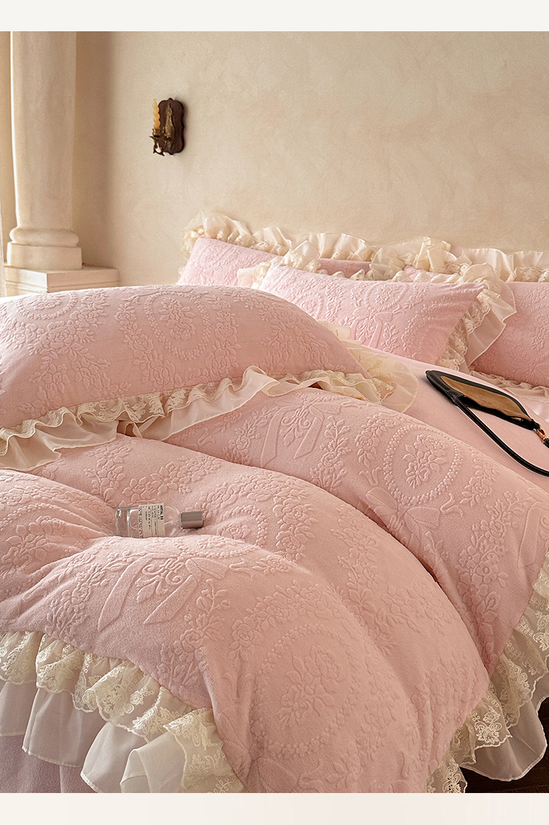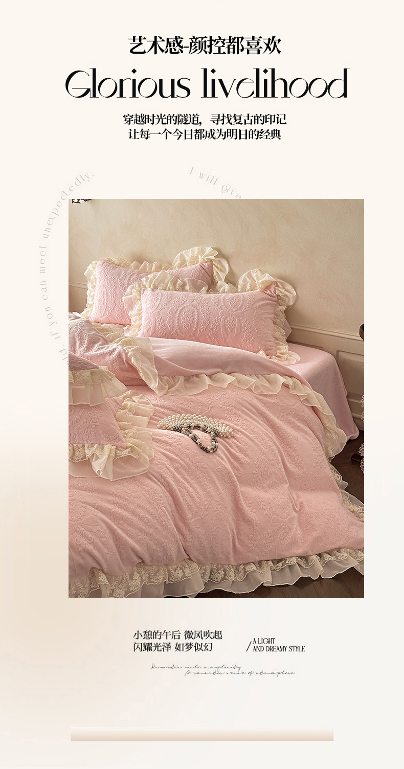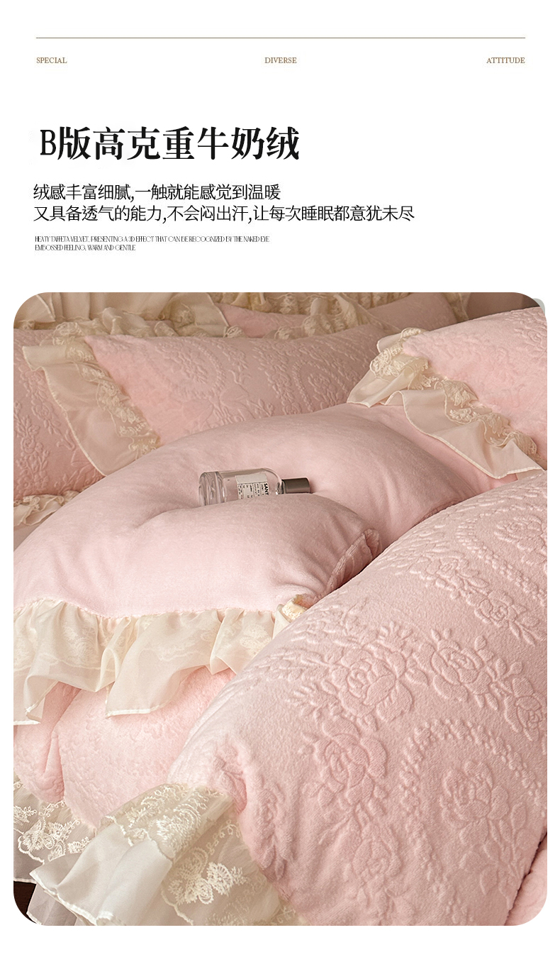 当前位置: 91家纺网 > 商品网购 > 床品套件 > 四件套 > 牛奶绒四件套 > 你好美丽 2025新款立体雕花牛奶绒双层花边四件套-玛丽系列 玛丽粉