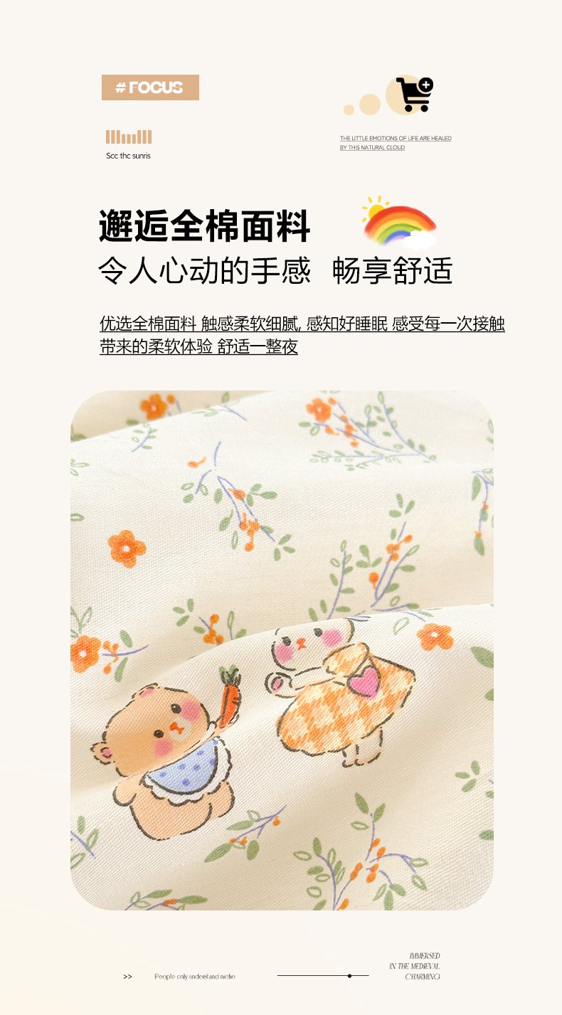 (总)清雅福 2026春夏新款INS小清新40支全棉13372单被套第一批,棒棒糖女孩,春之约定,点点小狗,动物聚会,豆丁小熊,粉心狗,富贵狗,果子象,含羞草,假日小狗