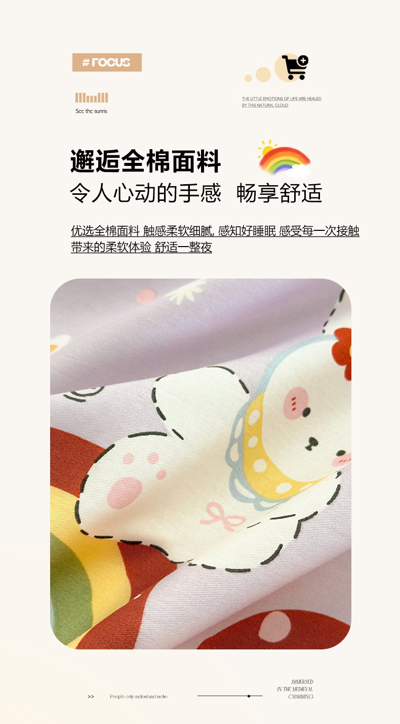 (总)清雅福 2026春夏新款INS小清新40支全棉13372单被套第一批,棒棒糖女孩,春之约定,点点小狗,动物聚会,豆丁小熊,粉心狗,富贵狗,果子象,含羞草,假日小狗