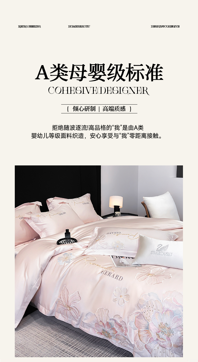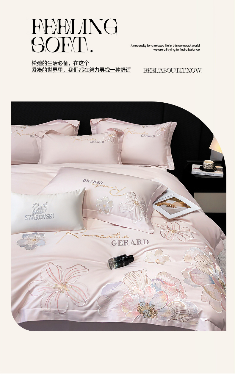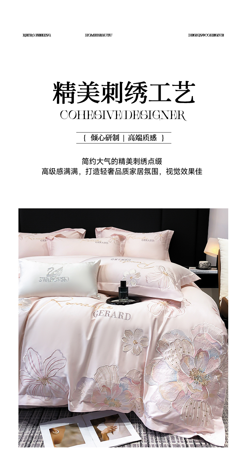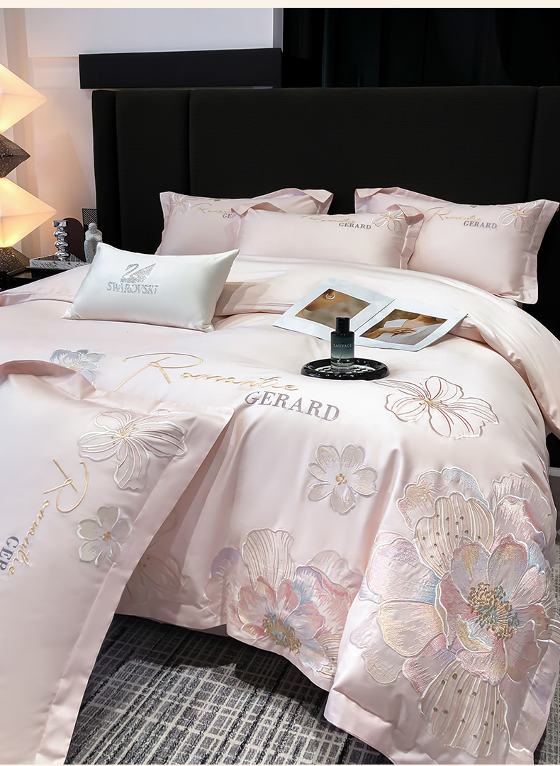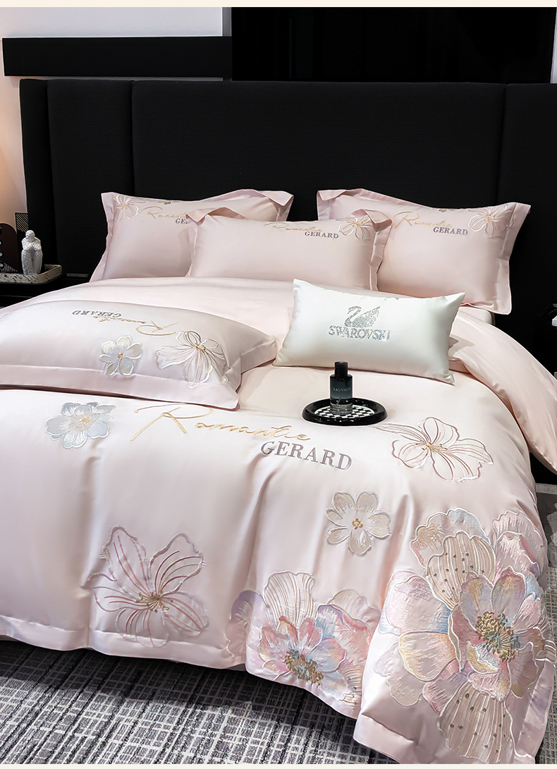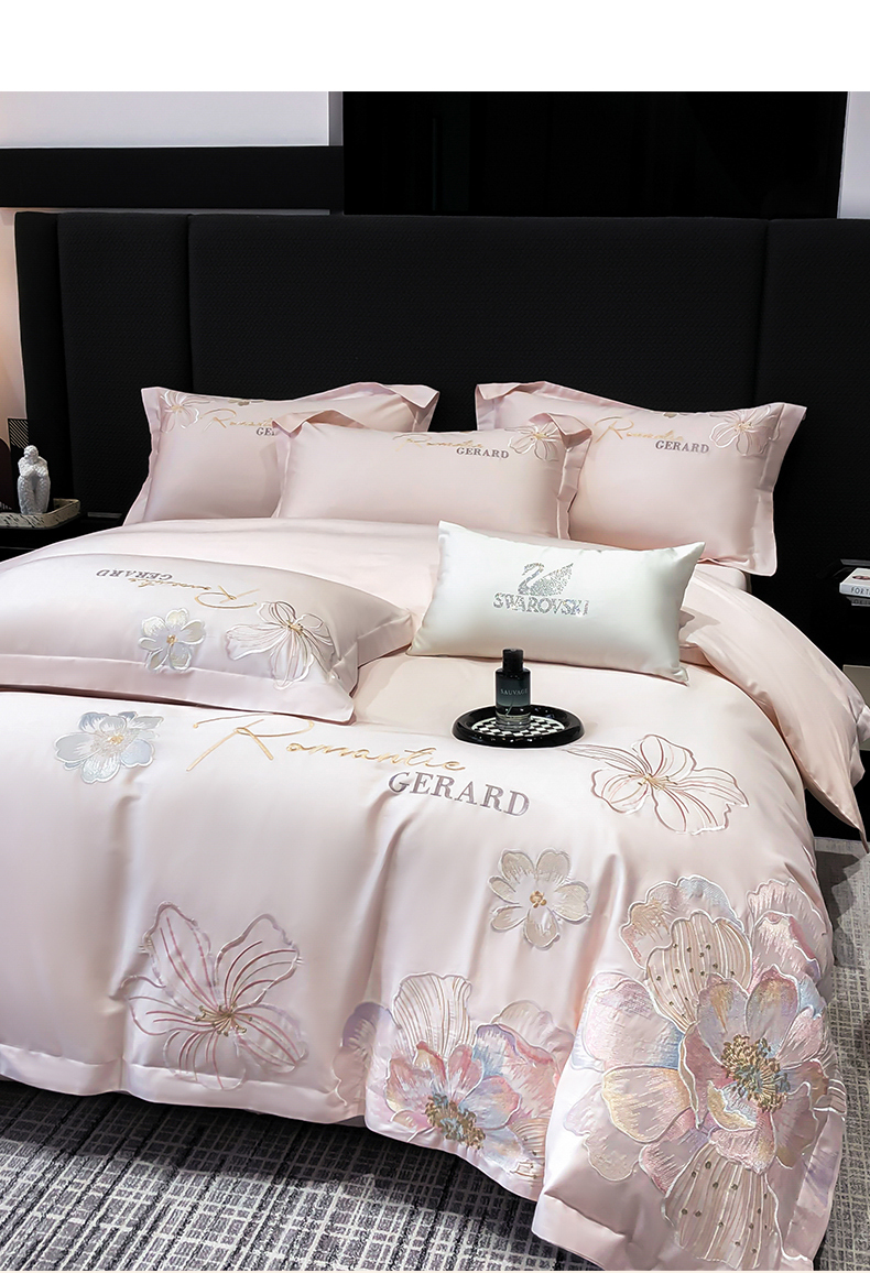 当前位置: 91家纺网 > 商品网购 > 床品套件 > 四件套 > 长绒棉四件套 > 木子家纺 2026新款A类50S贡缎长绒棉纯棉四件套-花漾 花漾-桃花粉-A类贡缎长绒棉