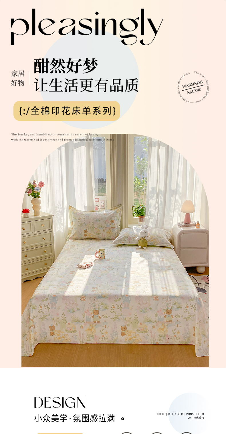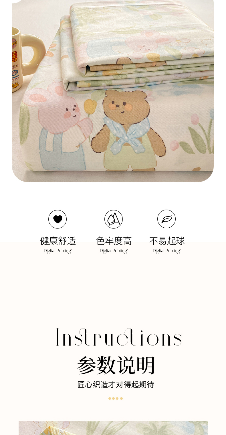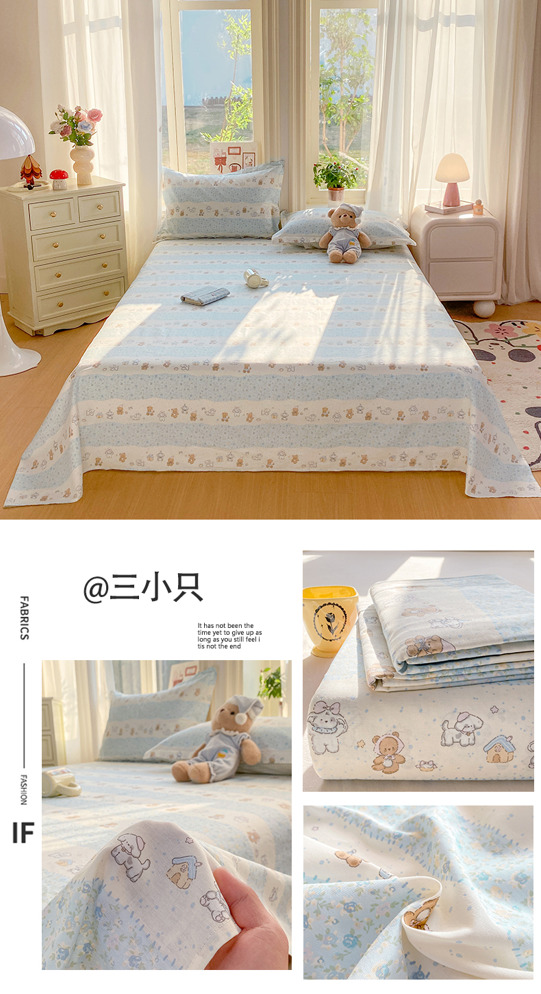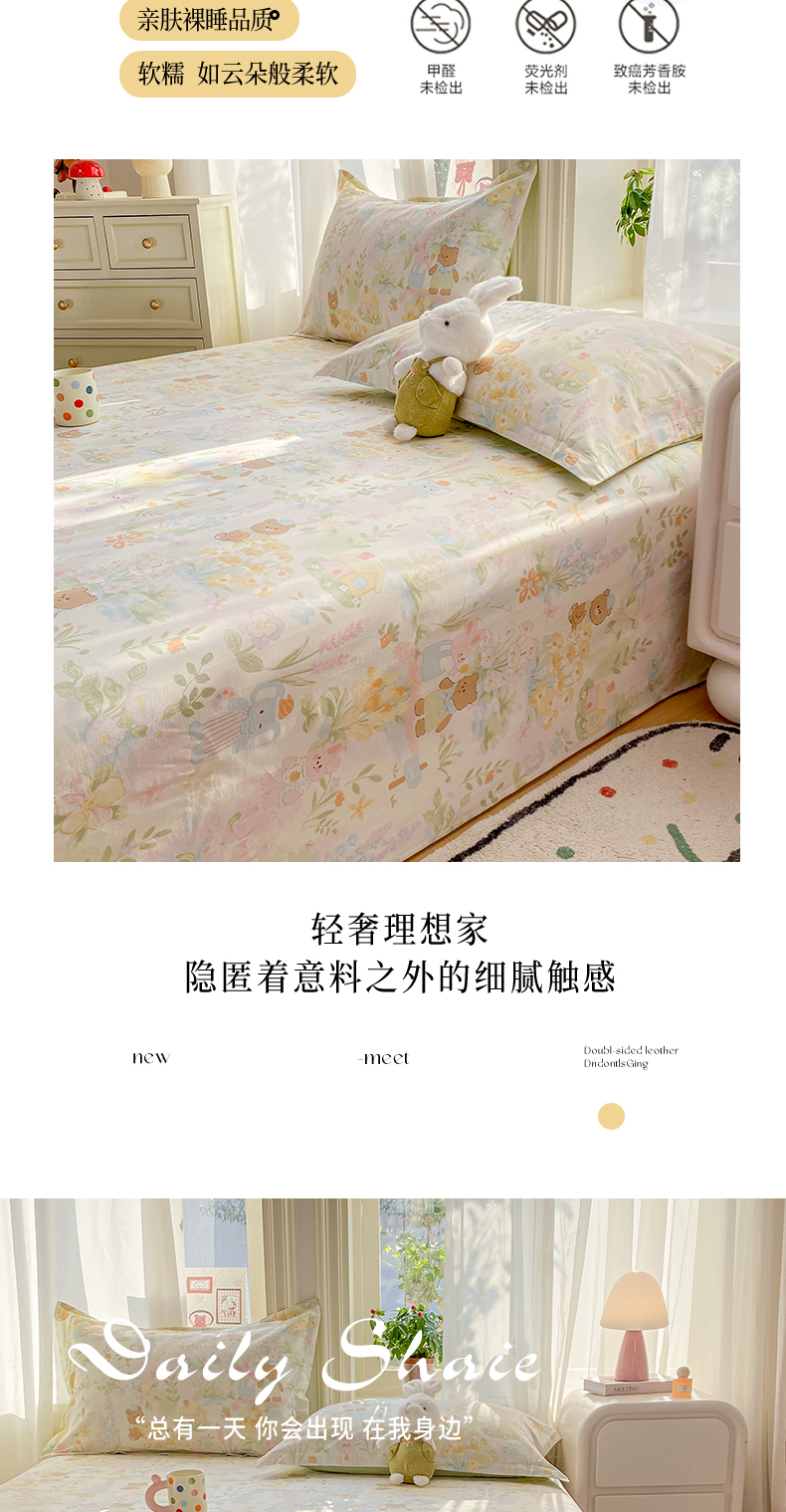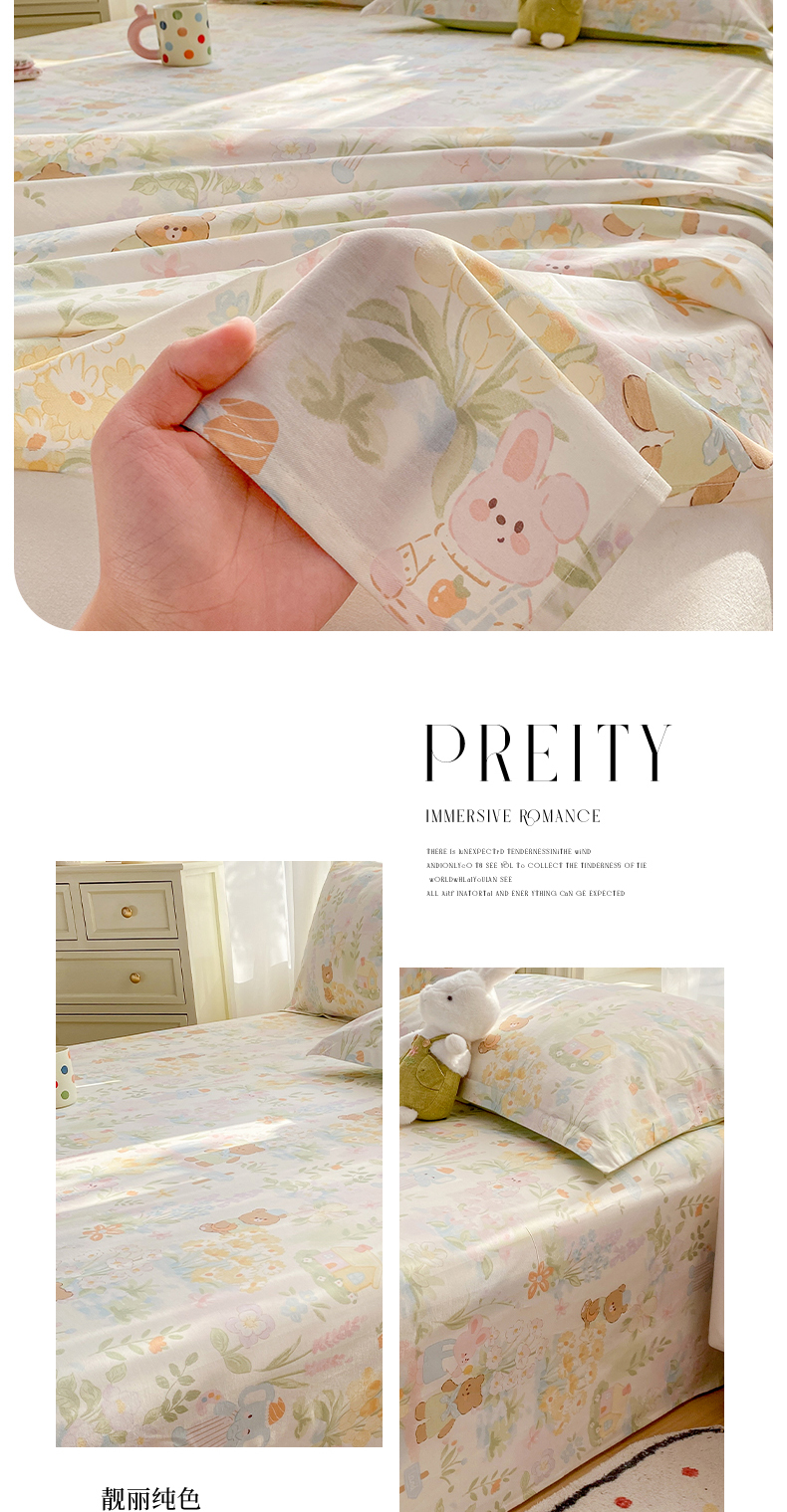 • 91家纺网 家纺一手货源 找家纺 花梦欣 2026新款全棉印花单品系列3简约卡通款-单床单 春游手记