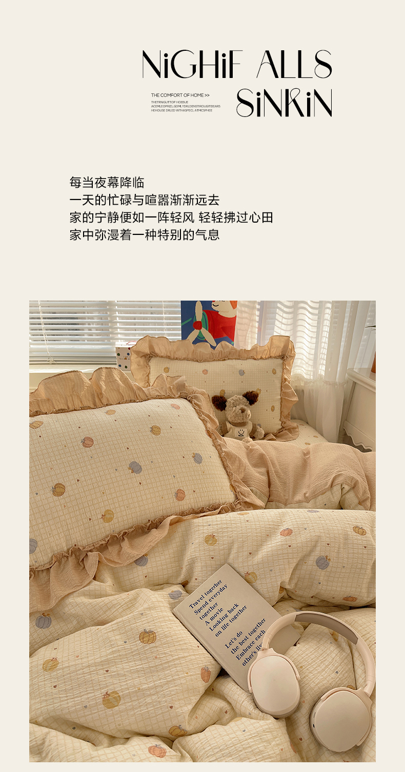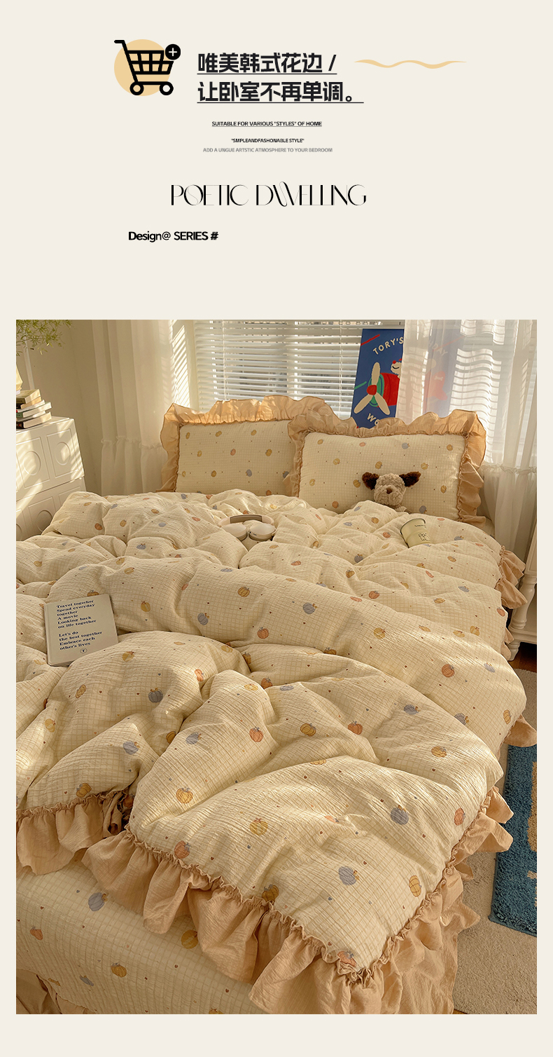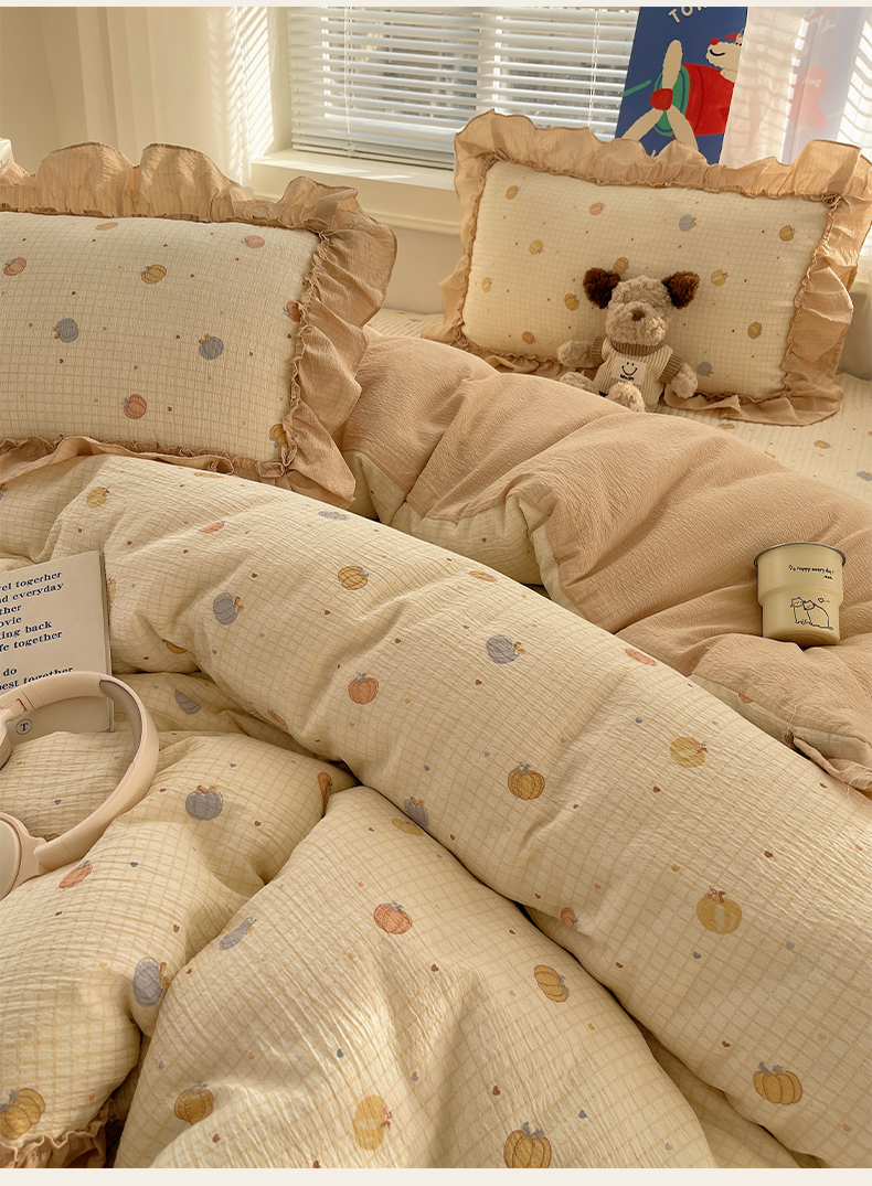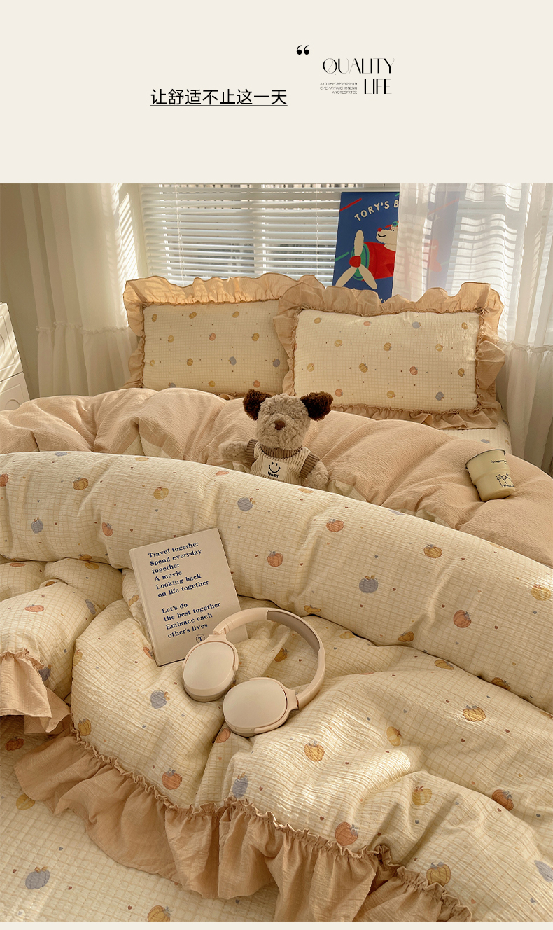 商品名称:韩都家居 2026新款云感双层纱床盖四件套 多宝南瓜