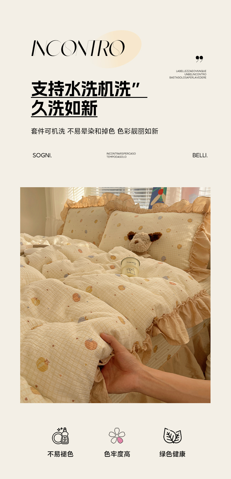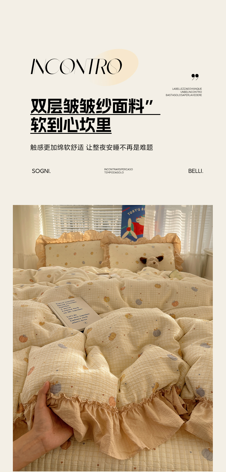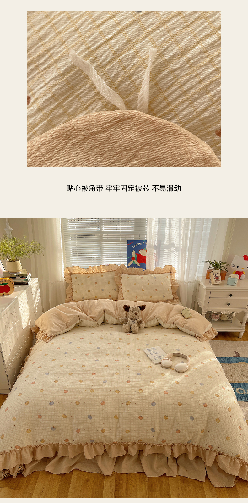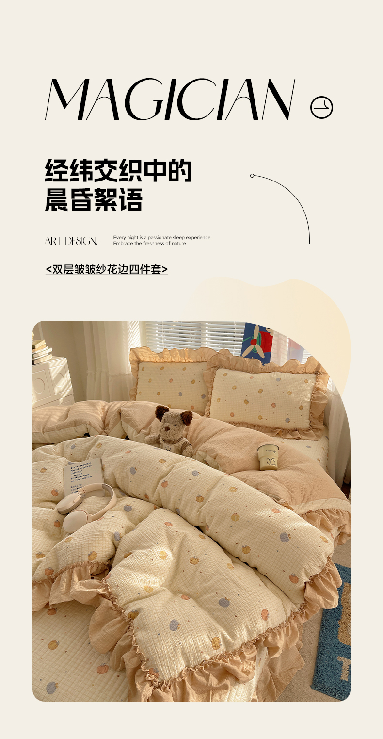 商品名称:韩都家居 2026新款云感双层纱床盖四件套 多宝南瓜