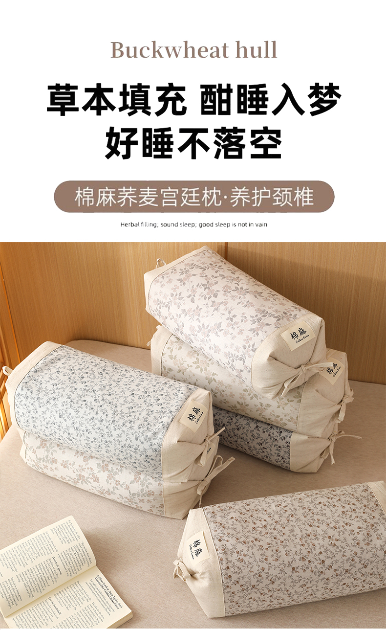 当前位置: 91家纺网 > 商品网购 > 枕头/枕芯/保健枕/颈椎枕 > 枕头枕芯 > 芯洲 2026新款古典宫廷荞麦枕棉麻款可调节高度绑带款荞麦助眠枕头枕芯 组合图
