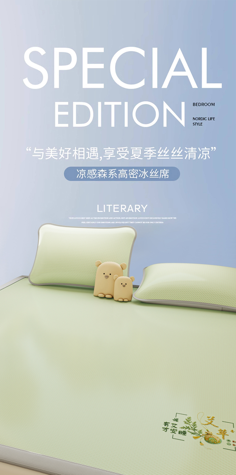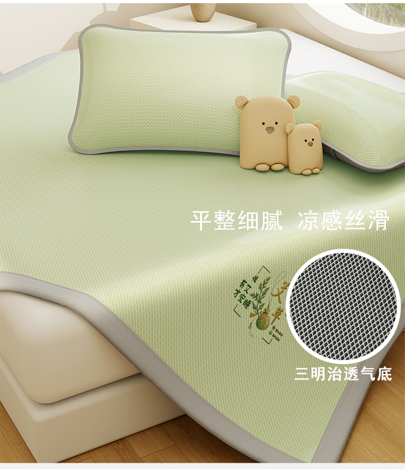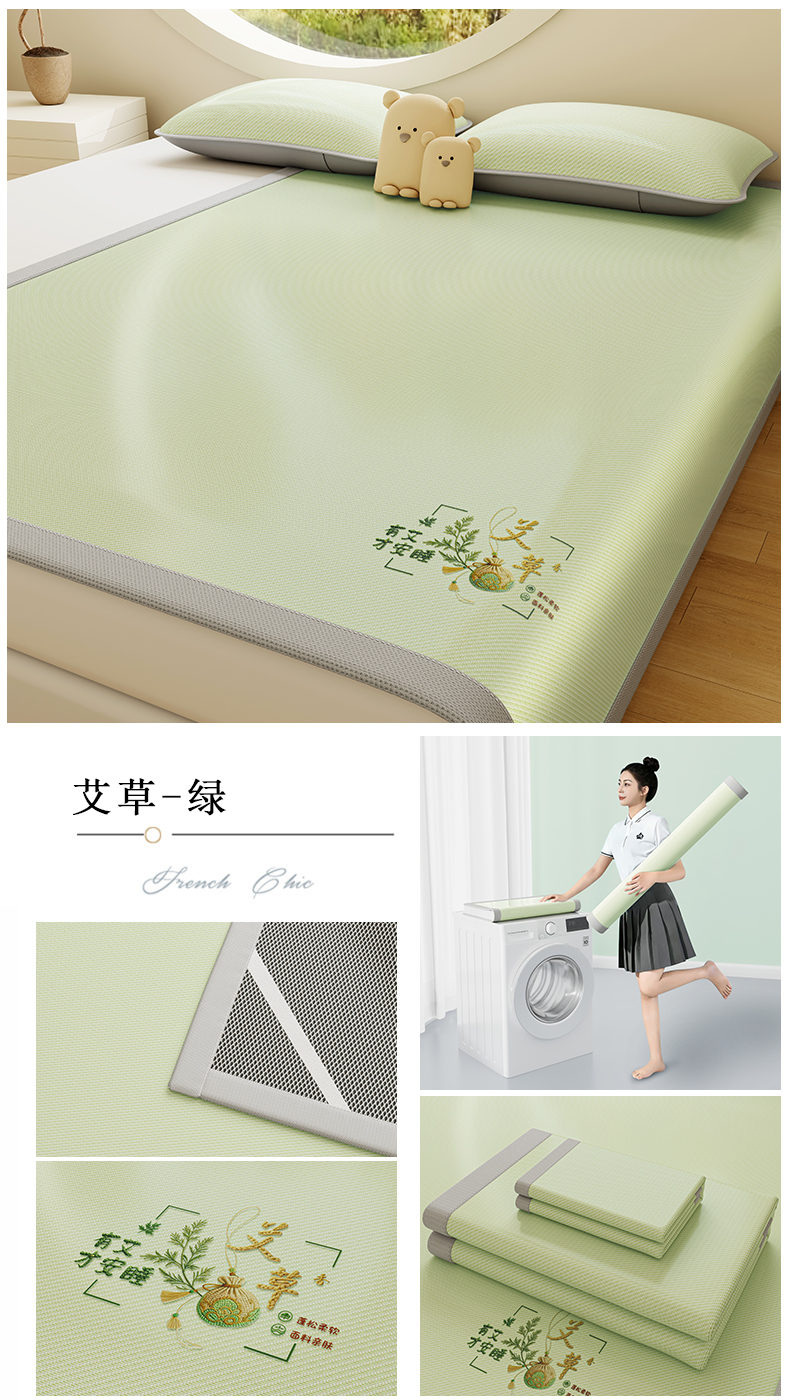 当前位置: 91家纺网 > 商品网购 > 床上用品 > 凉席 > 凉席套件 > 家品罗兰 2026新款夏季A类艾草碳光凉席三明治冰丝凉席家用冰丝席可机洗空调软席三件套-大床 艾草-绿