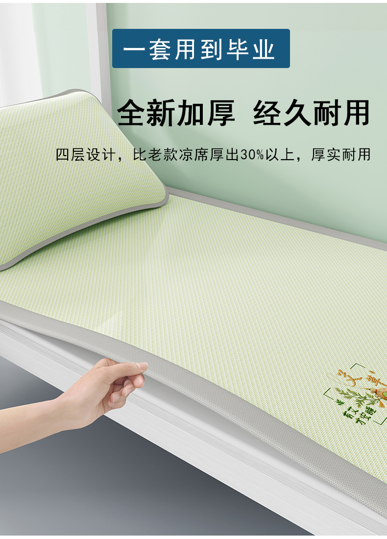 当前位置: 91家纺网 > 商品网购 > 床上用品 > 凉席 > 凉席套件 > 奇丝雅 2026新款夏季A类艾草碳光凉席三明治冰丝凉席家用冰丝席可机洗学生宿舍上下铺空调软席三件套-学生床 艾草-绿(三明治网底)