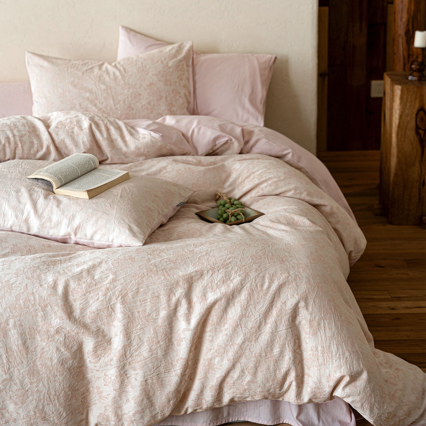当前位置: 91家纺网 > 商品网购 > 床品套件 > 四件套 > 全棉普通四件套 > 时光里 2026新款全棉纯棉60支色织水洗提花四件套 椿樱时--浅山