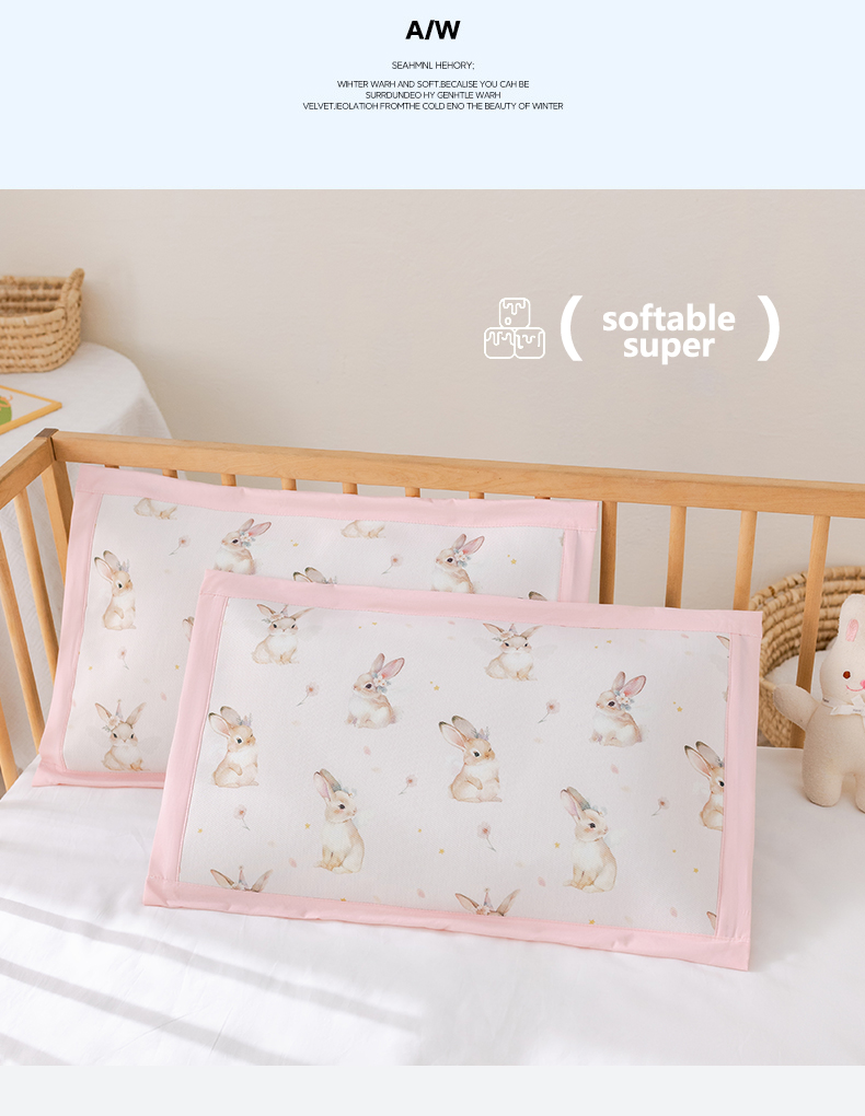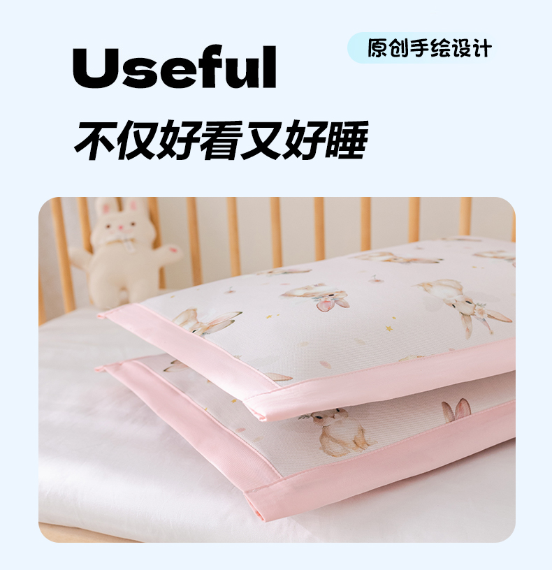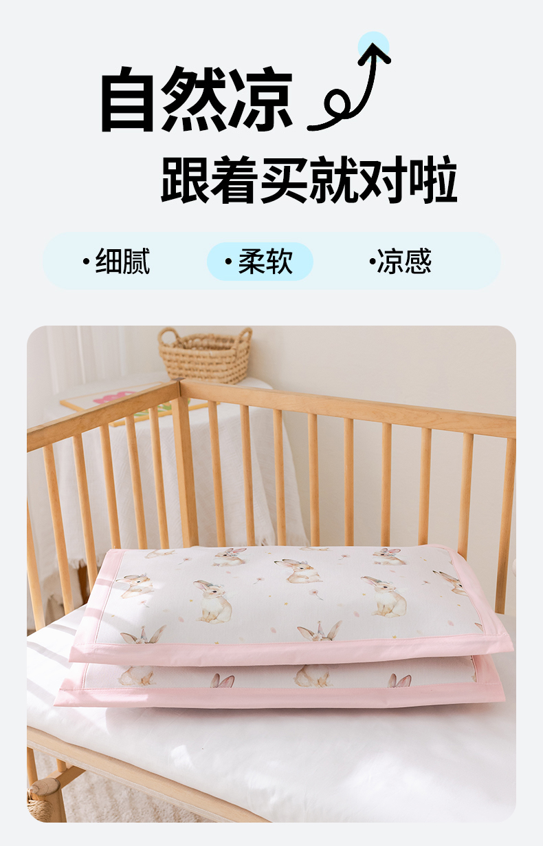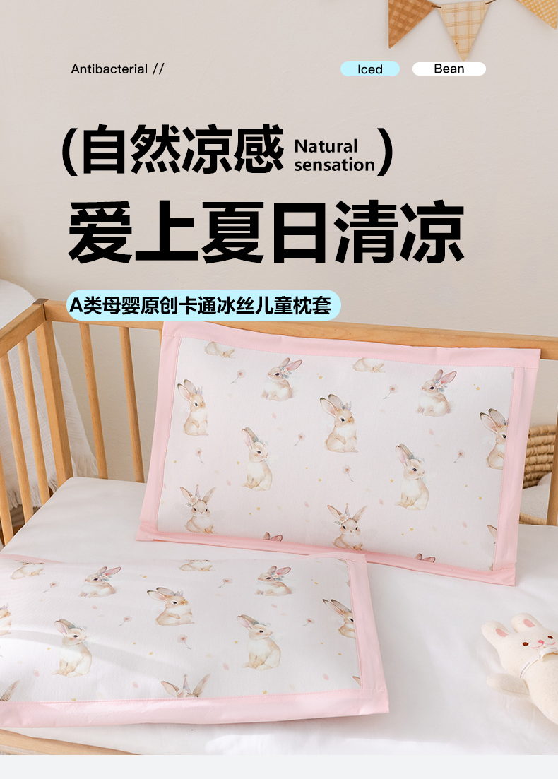 商品名称:荷马之梦 2026新款A类母婴原创卡通冰丝儿童枕套 天使小兔