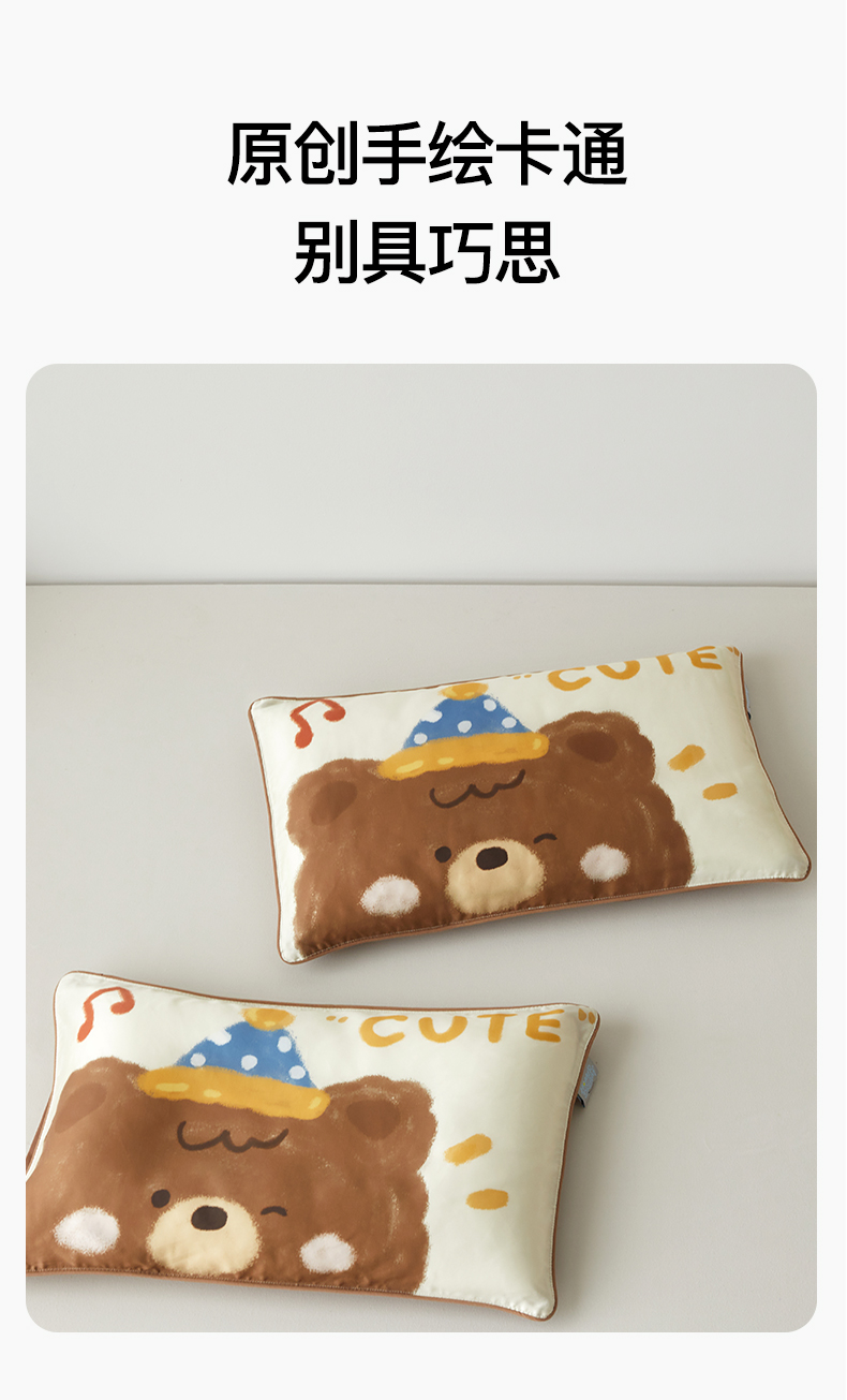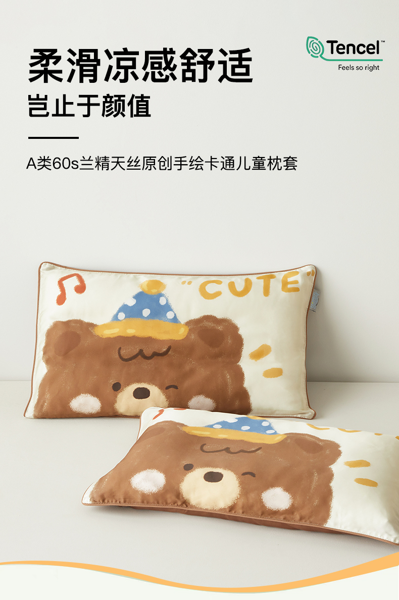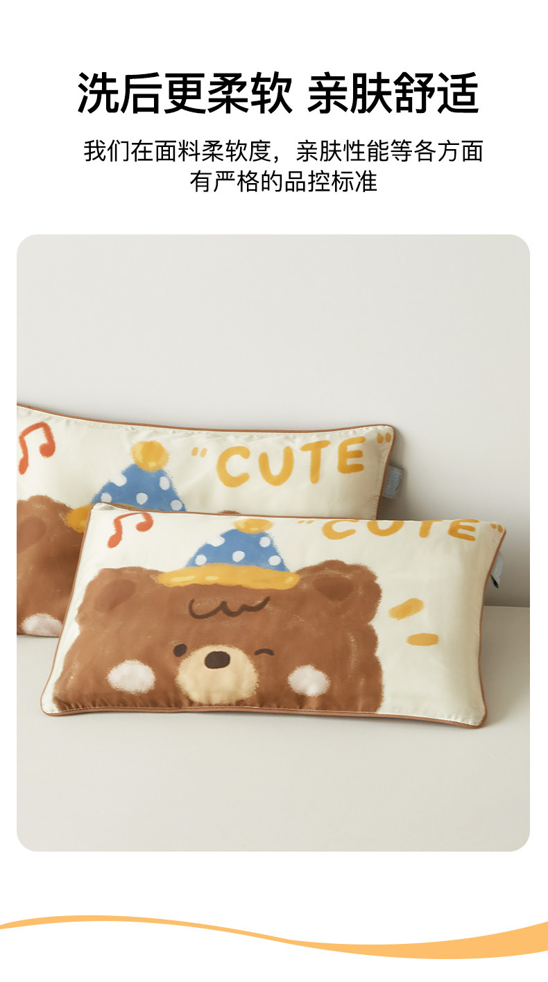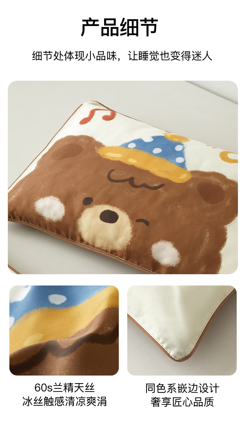 商品名称:荷马之梦 2026新款60s兰精天丝原创数码印花大版儿童枕套 糯糯小熊