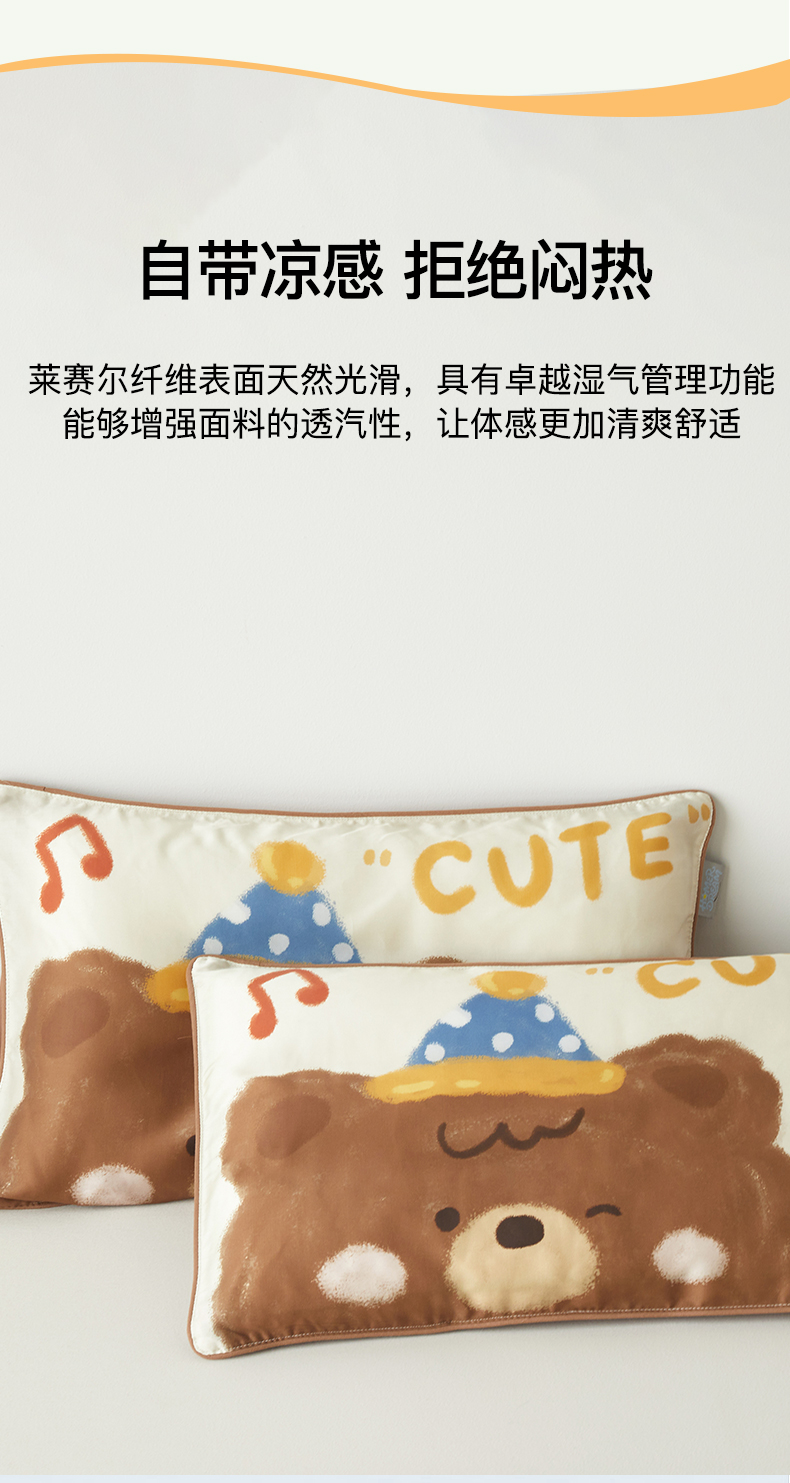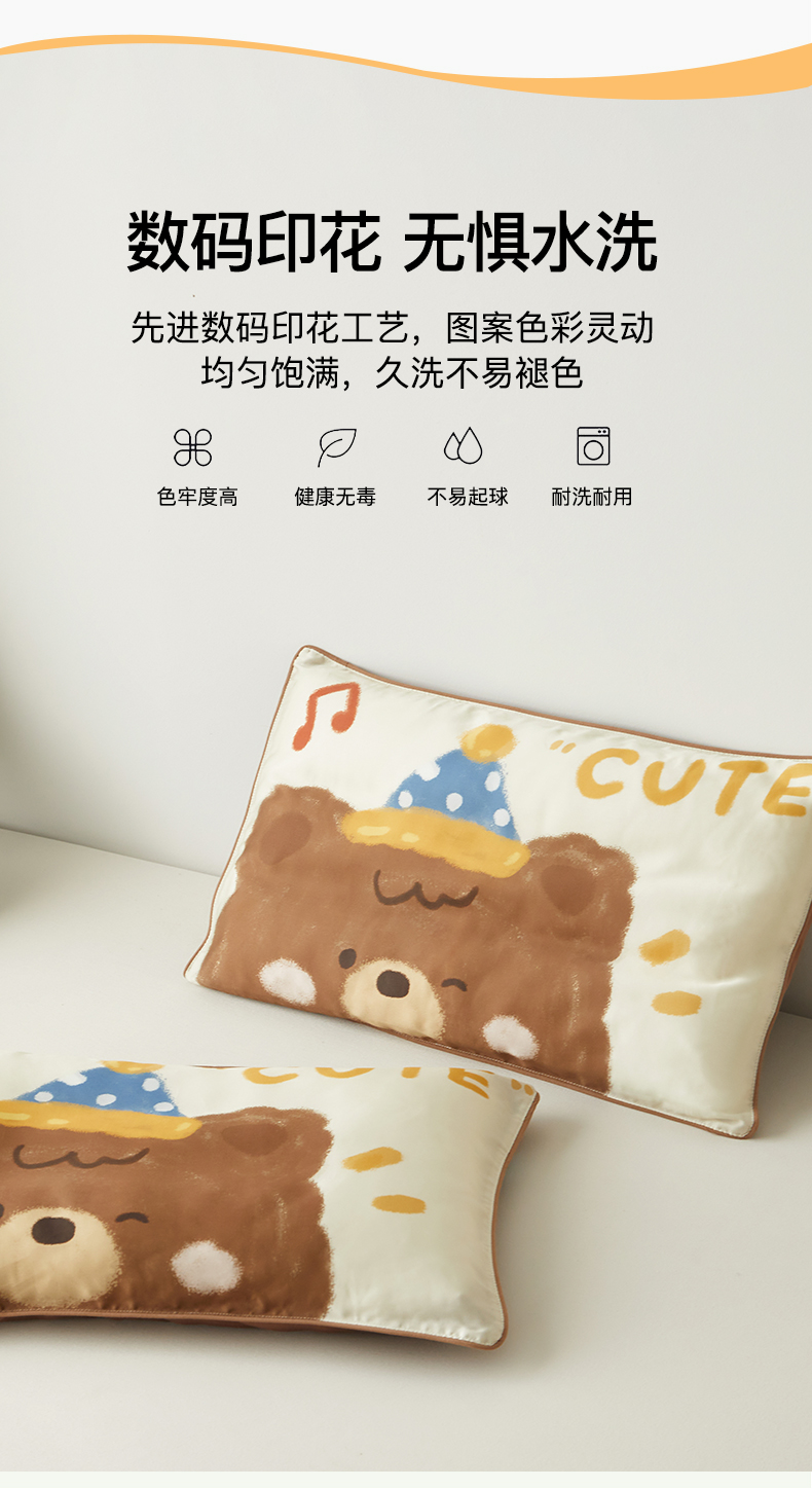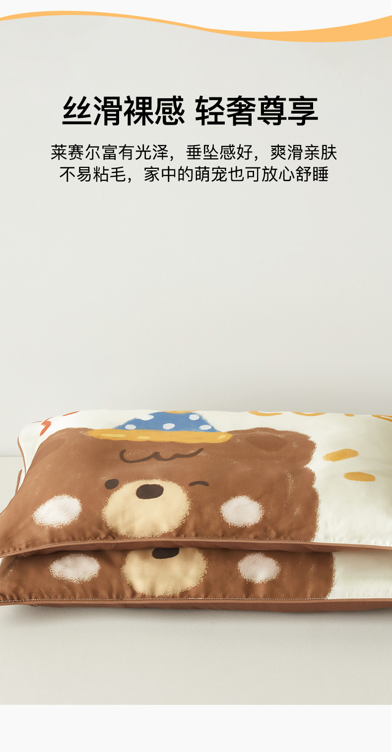 商品名称:荷马之梦 2026新款60s兰精天丝原创数码印花大版儿童枕套 糯糯小熊