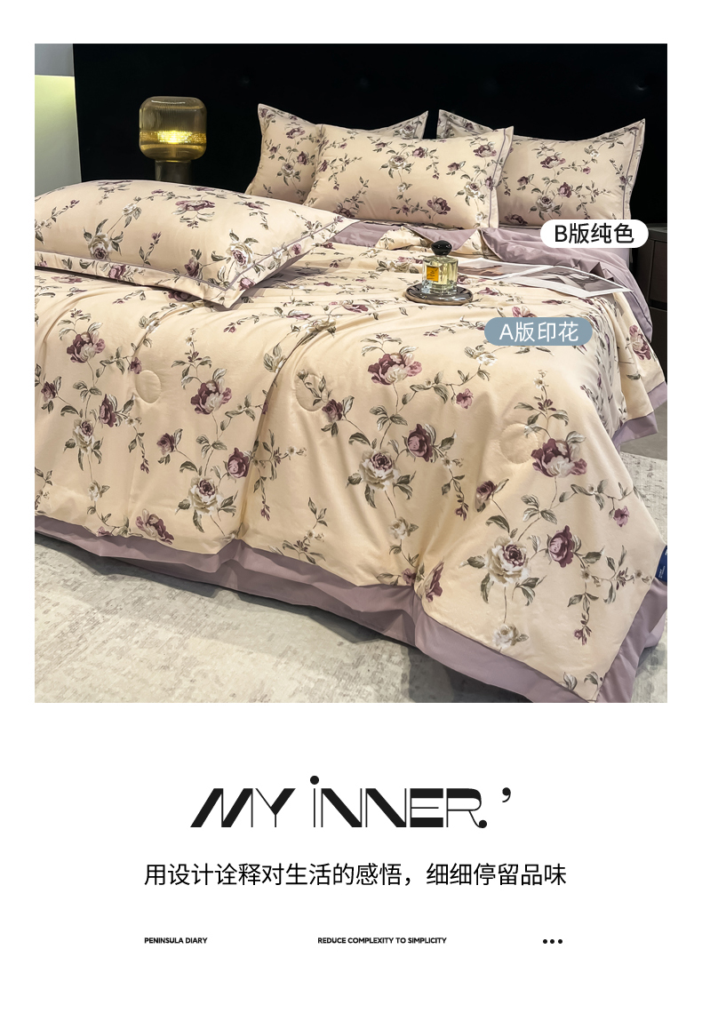 商品名称:金梦拉家纺 2026新款凉感天丝竹节纱大宽边一字绣夏被空调被夏凉被四件套 风语花絮