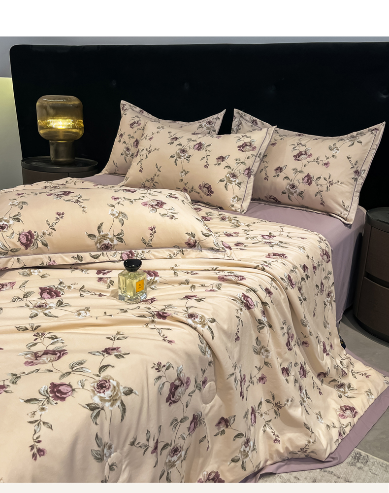 金梦拉家纺 2026新款凉感天丝竹节纱大宽边一字绣夏被空调被夏凉被四件套 风语花絮