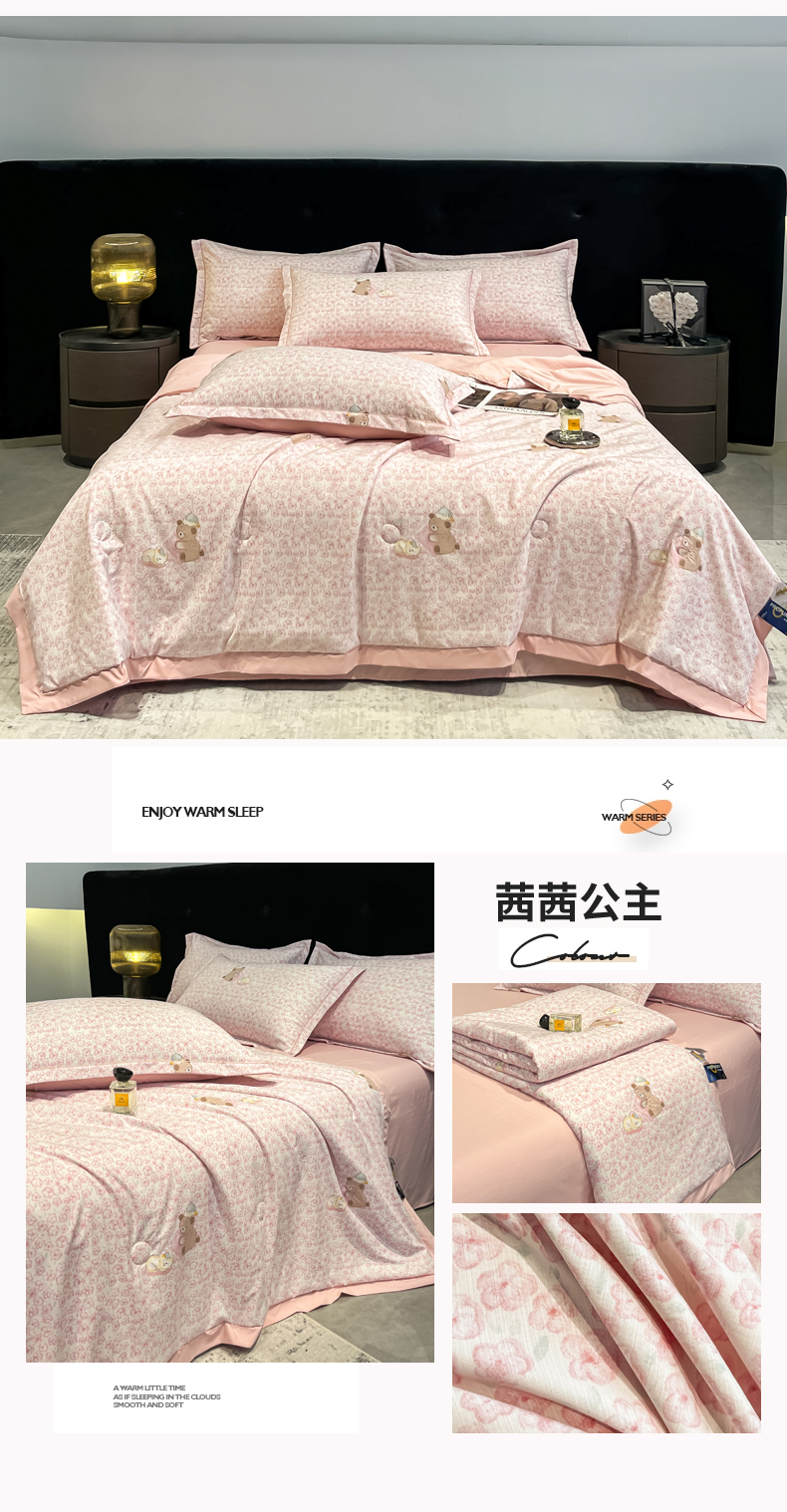 (总)金梦拉家纺 2026新款凉感天丝竹节纱大宽边一字绣夏被空调被夏凉被四件套,初妍,繁希紫,风语花絮,欢乐熊宝,幻境紫,流苏粉,绿韵春晓,木槿,木马蓝,茜茜公主,青棠绿,青瑶粉,童梦国