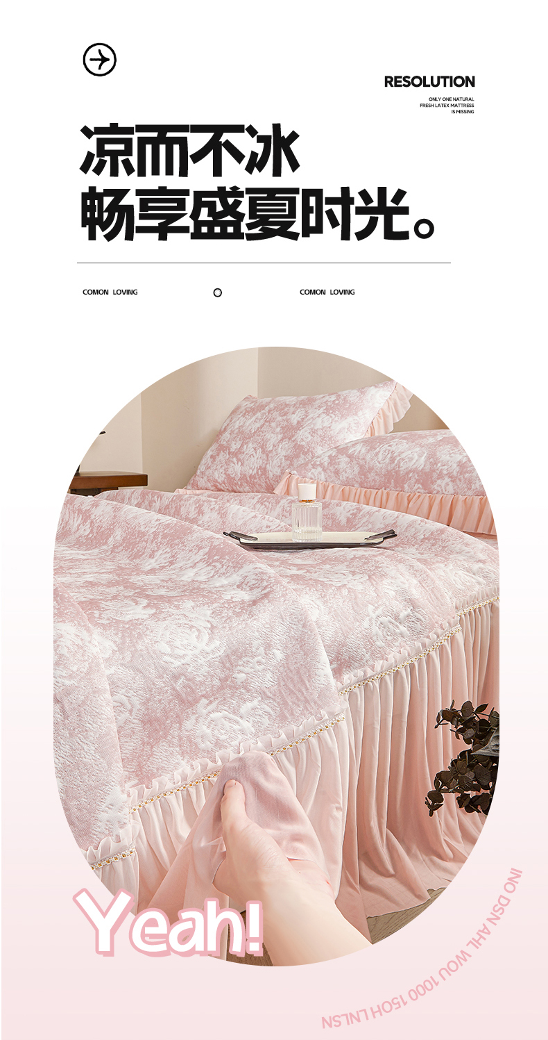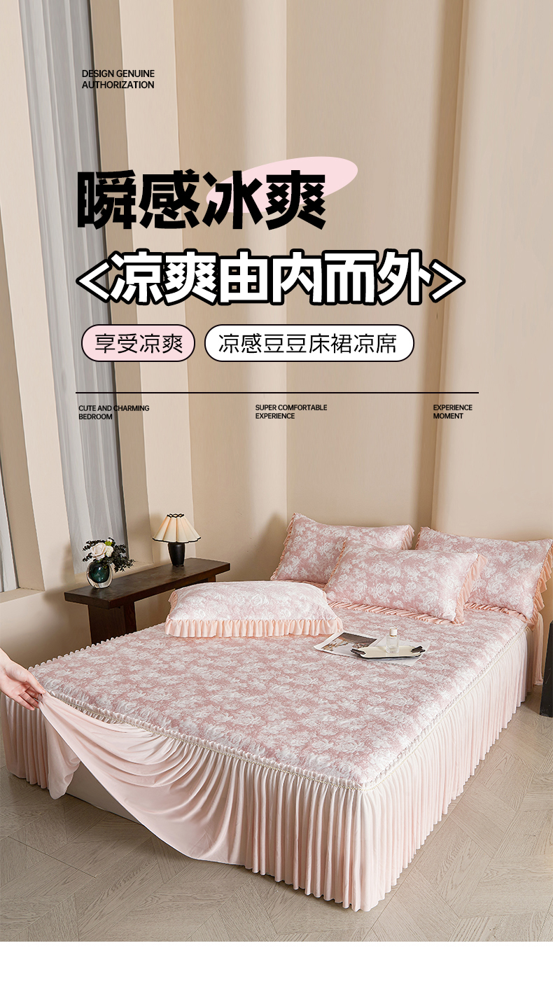 商品名称:喜梦缘家纺 2026新款PE冰豆豆冰丝床裙款凉席席子-玫瑰系列 红玫瑰