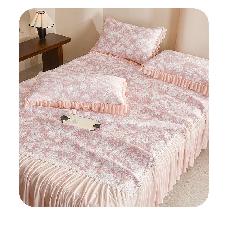 (总)喜梦缘家纺 2026新款PE冰豆豆冰丝床裙款凉席席子-玫瑰系列,红玫瑰,灰玫瑰,蓝玫瑰,绿玫瑰