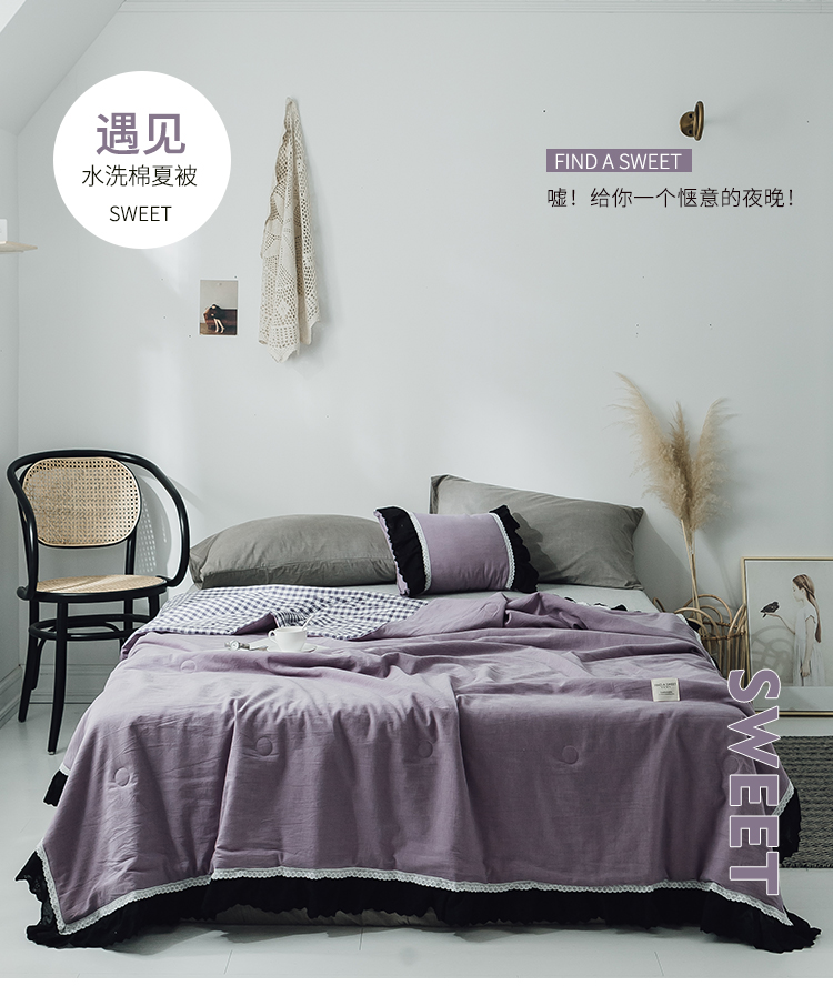 商品名称:润缦 2019新款色织贡缎水洗棉夏被丁香紫