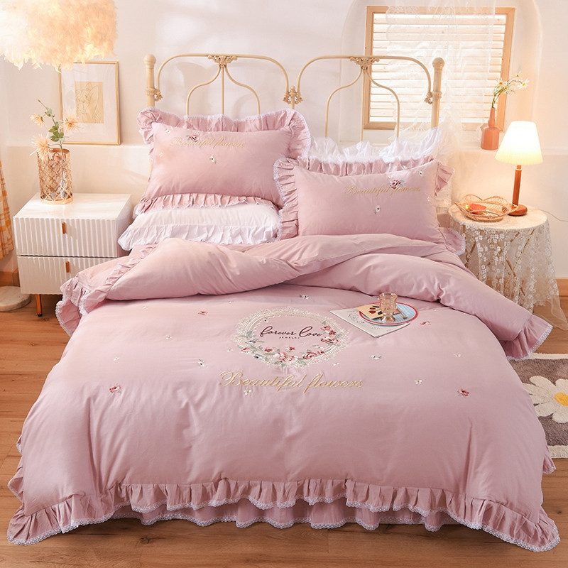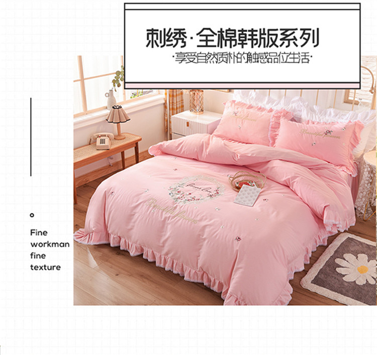迪欧芙 2024春季纯棉13372公主风四件套爱的结语系列 爱的结语-粉,爱的结语-粉