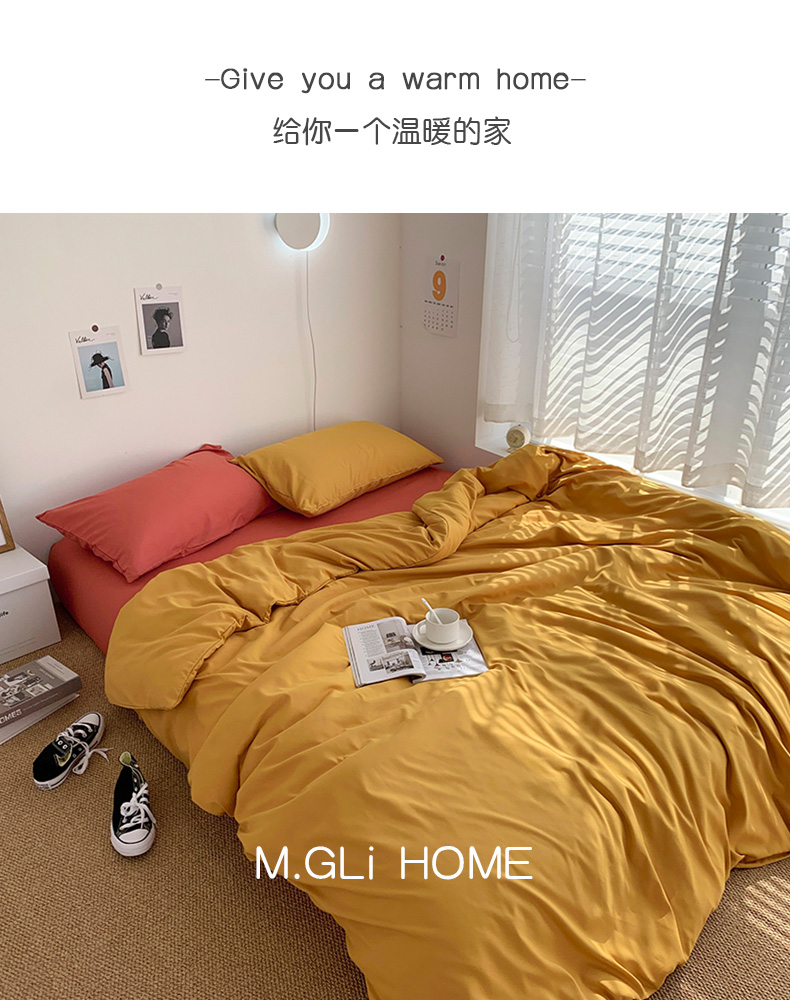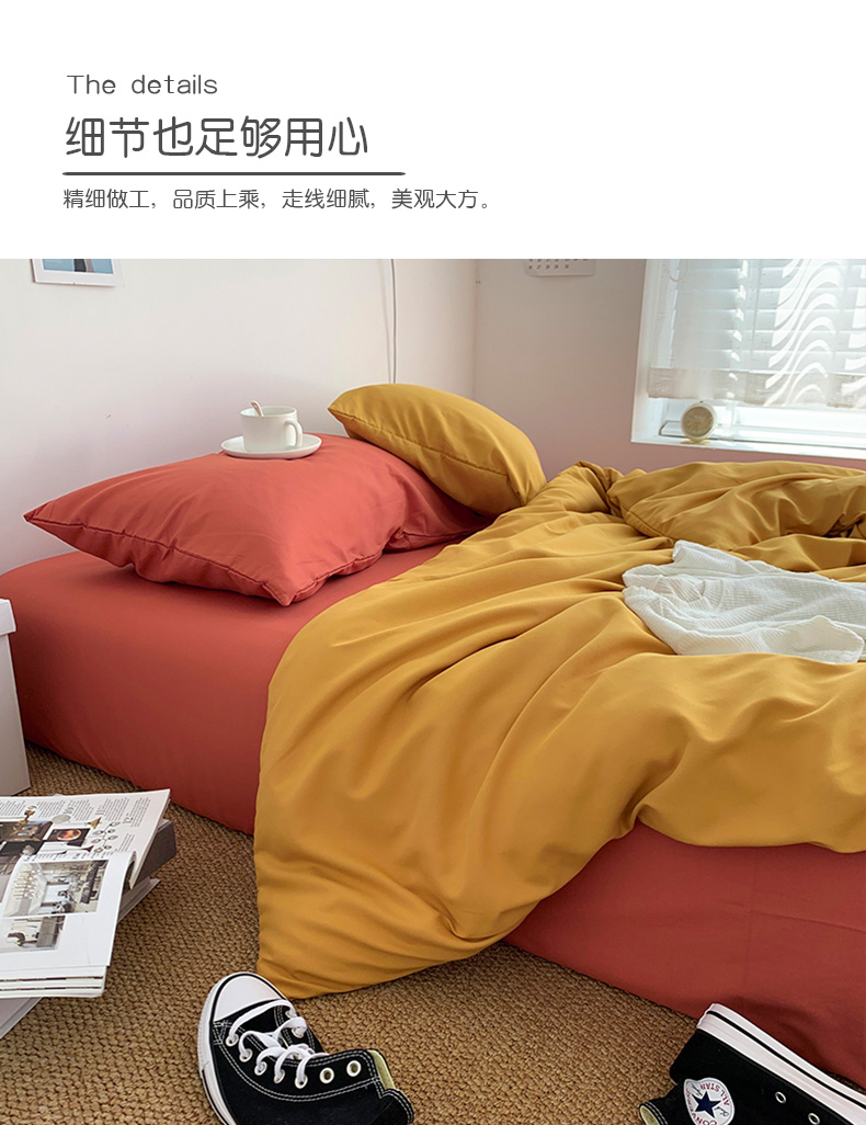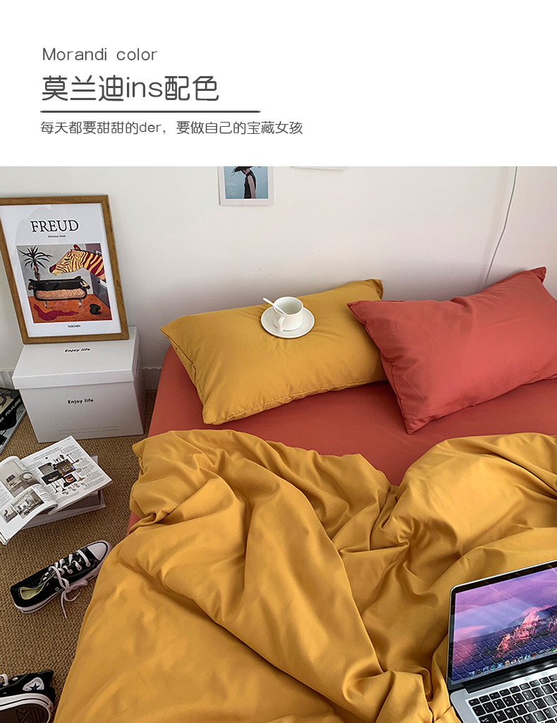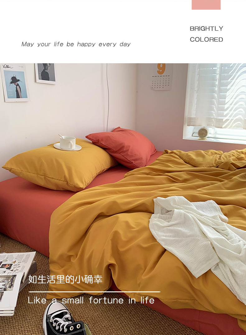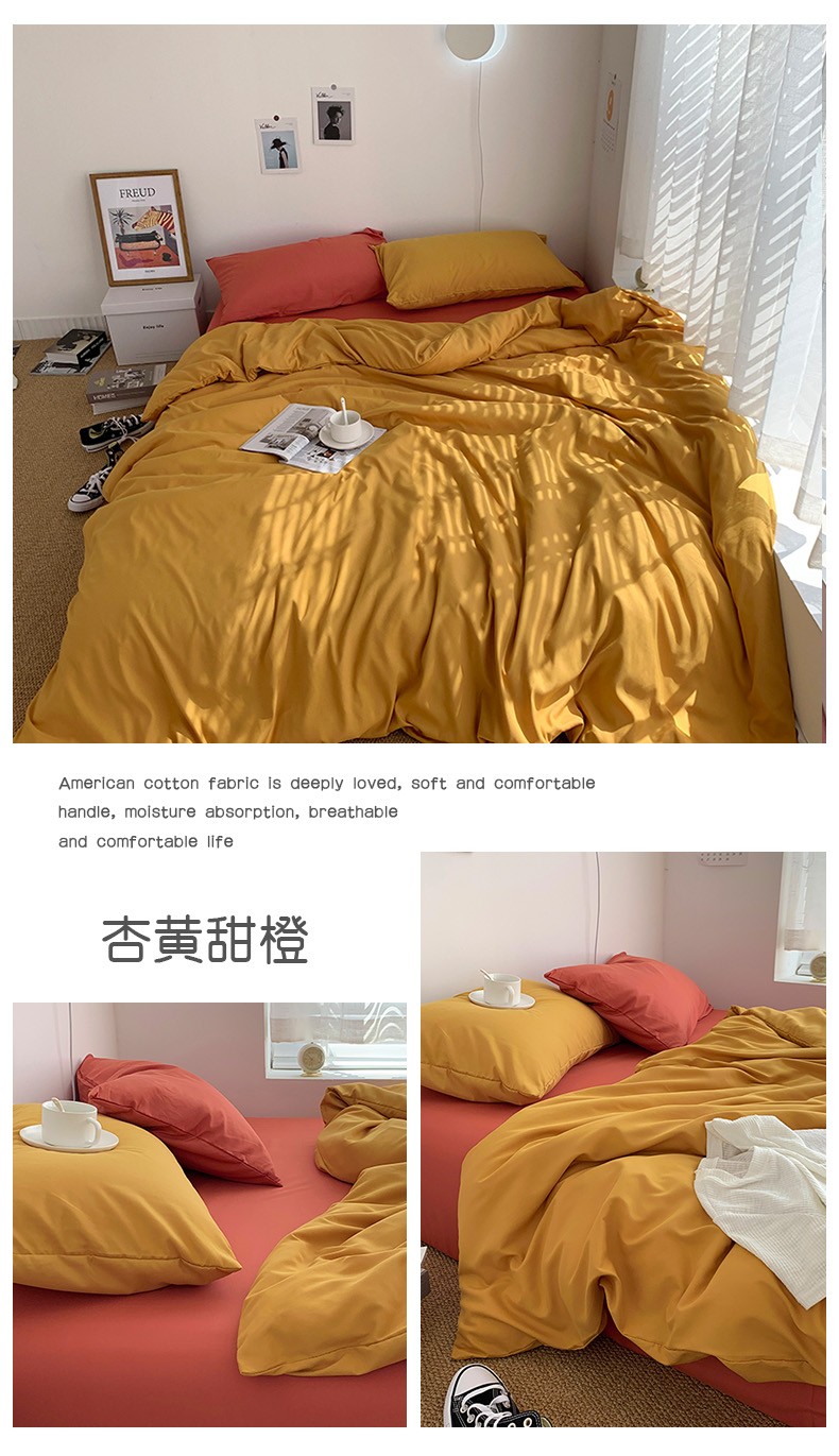 当前位置: 91家纺网 > 商品网购 > 床品套件 > 四件套 > 普通磨毛四件套 > 曼谷新款ins美棉磨毛纯色混搭拼色四件套 杏黄甜橙